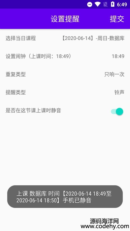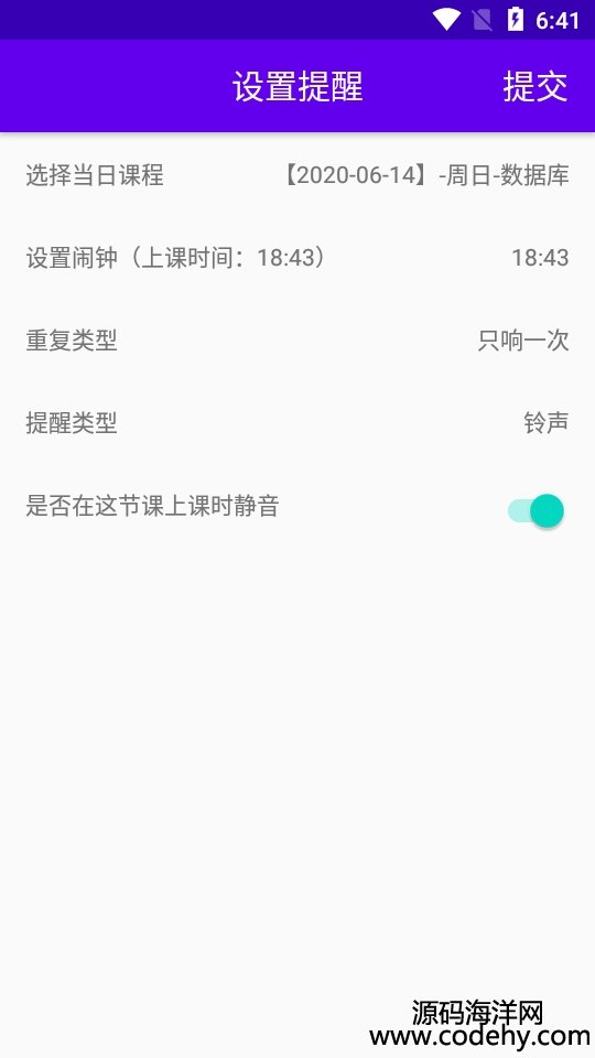 安卓作業源碼帶實驗報告,課程表APP, 支持json錄入課程表,設置鬧鐘提醒上課,上課期間靜音 帶實驗報告