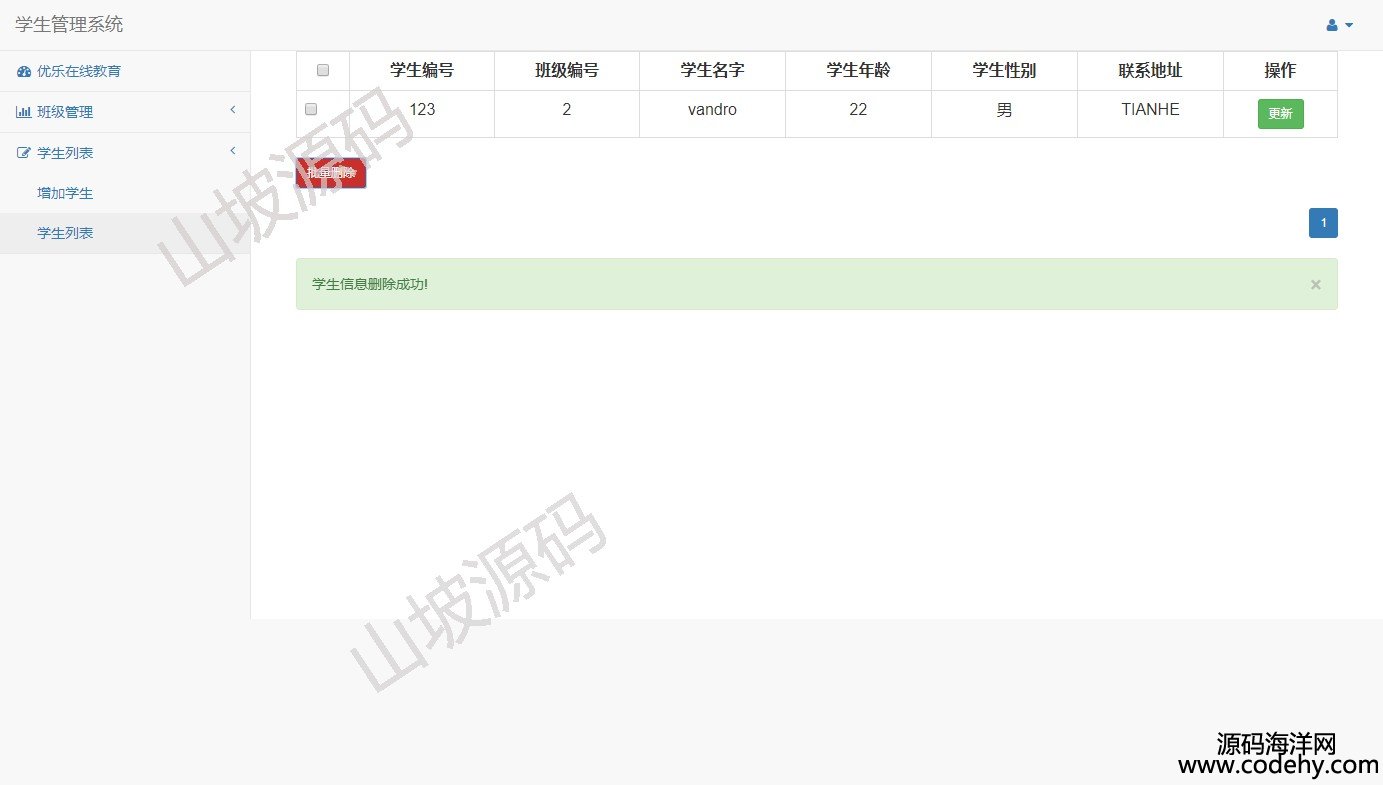 ● 實現(xiàn)通過班級編號查詢班級全部學生信息(使用異步刷新操作,并實現(xiàn)分頁)