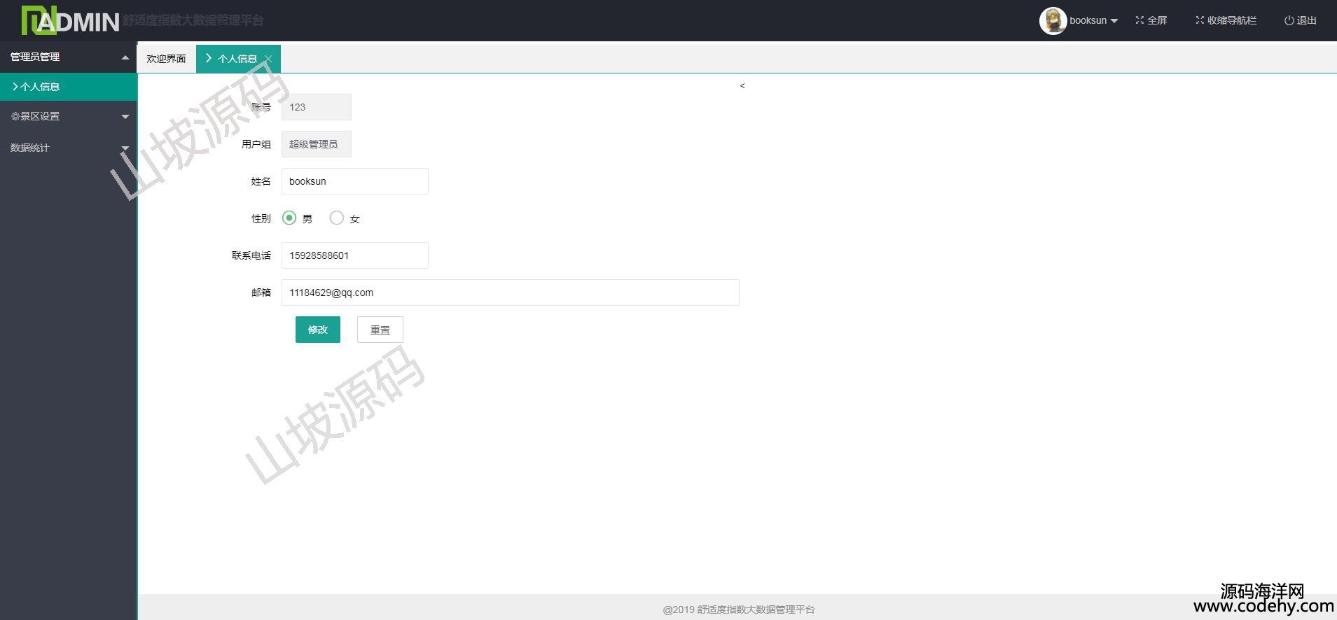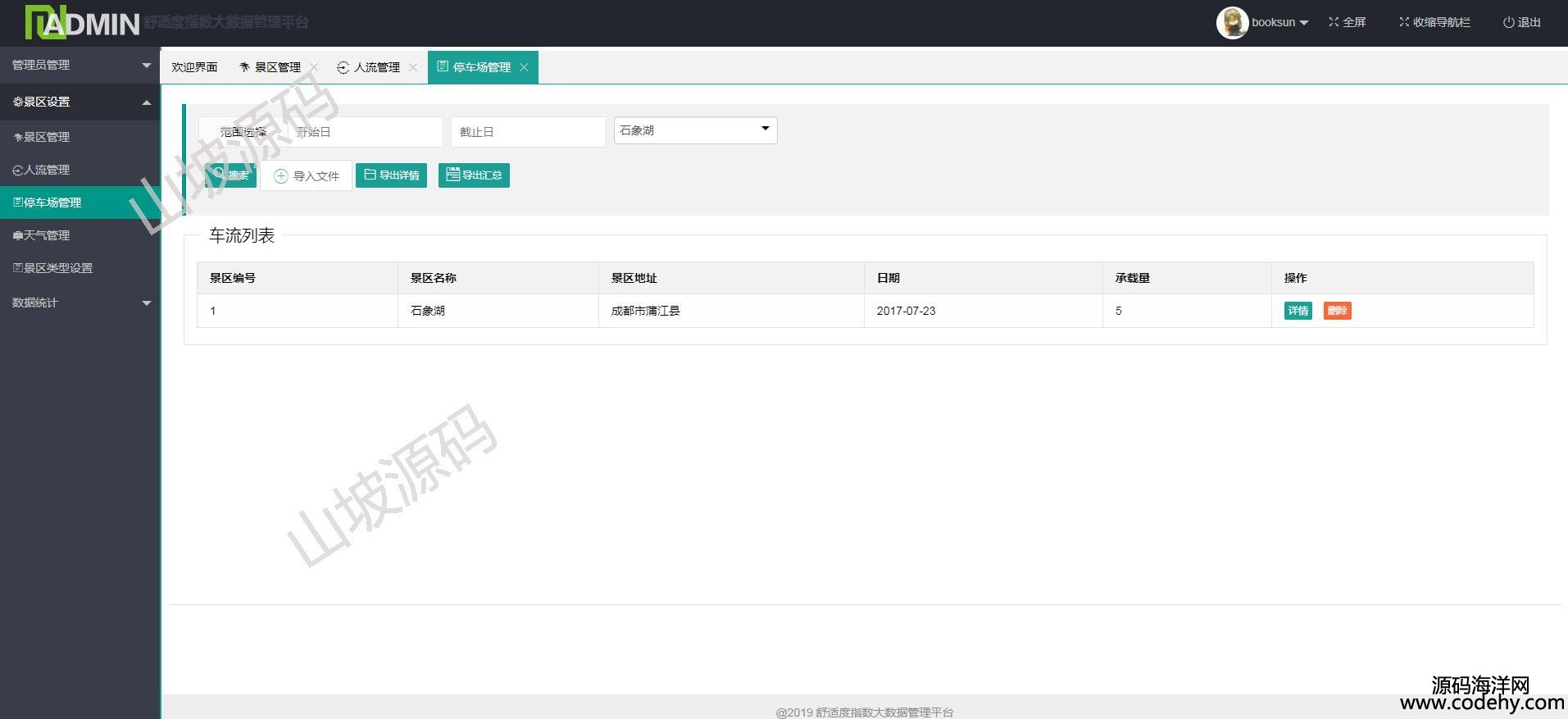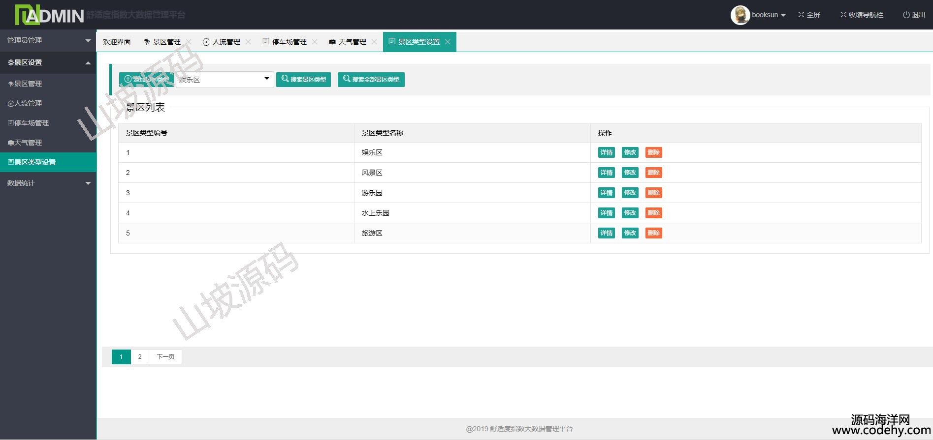 主要功能有:用戶登錄、個人信息修改、景區管理、人流管理、停車場管理、天氣管理