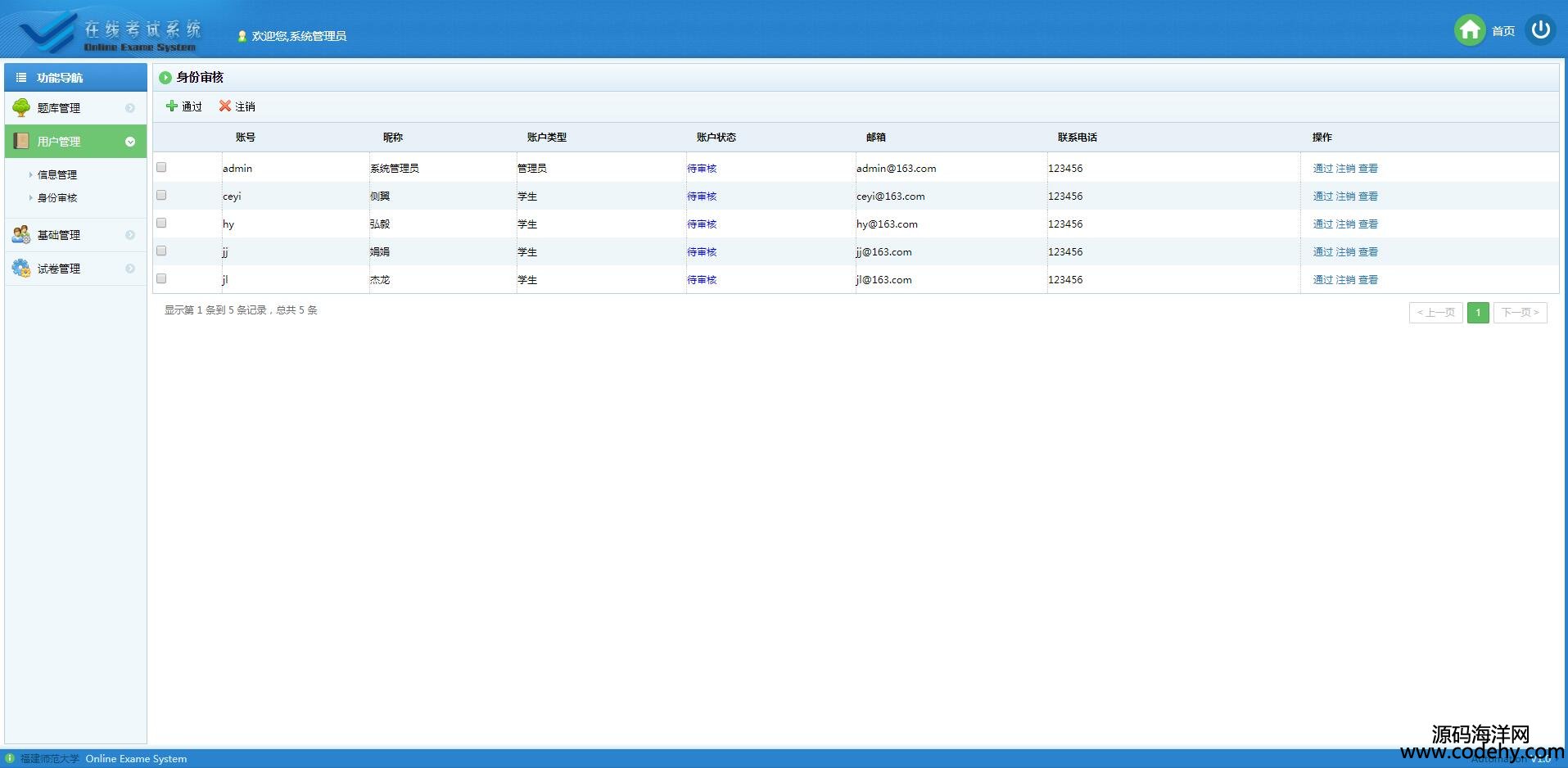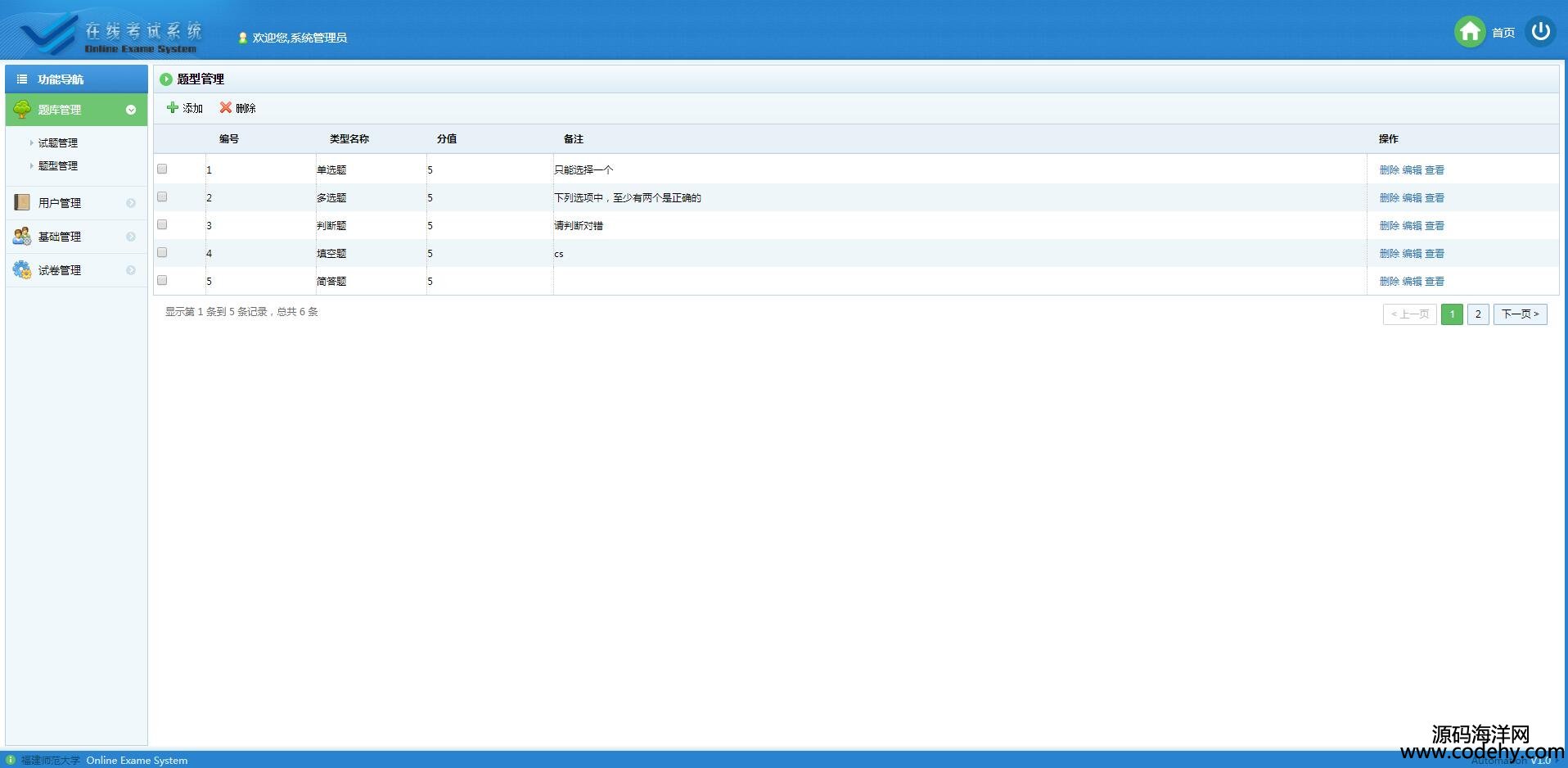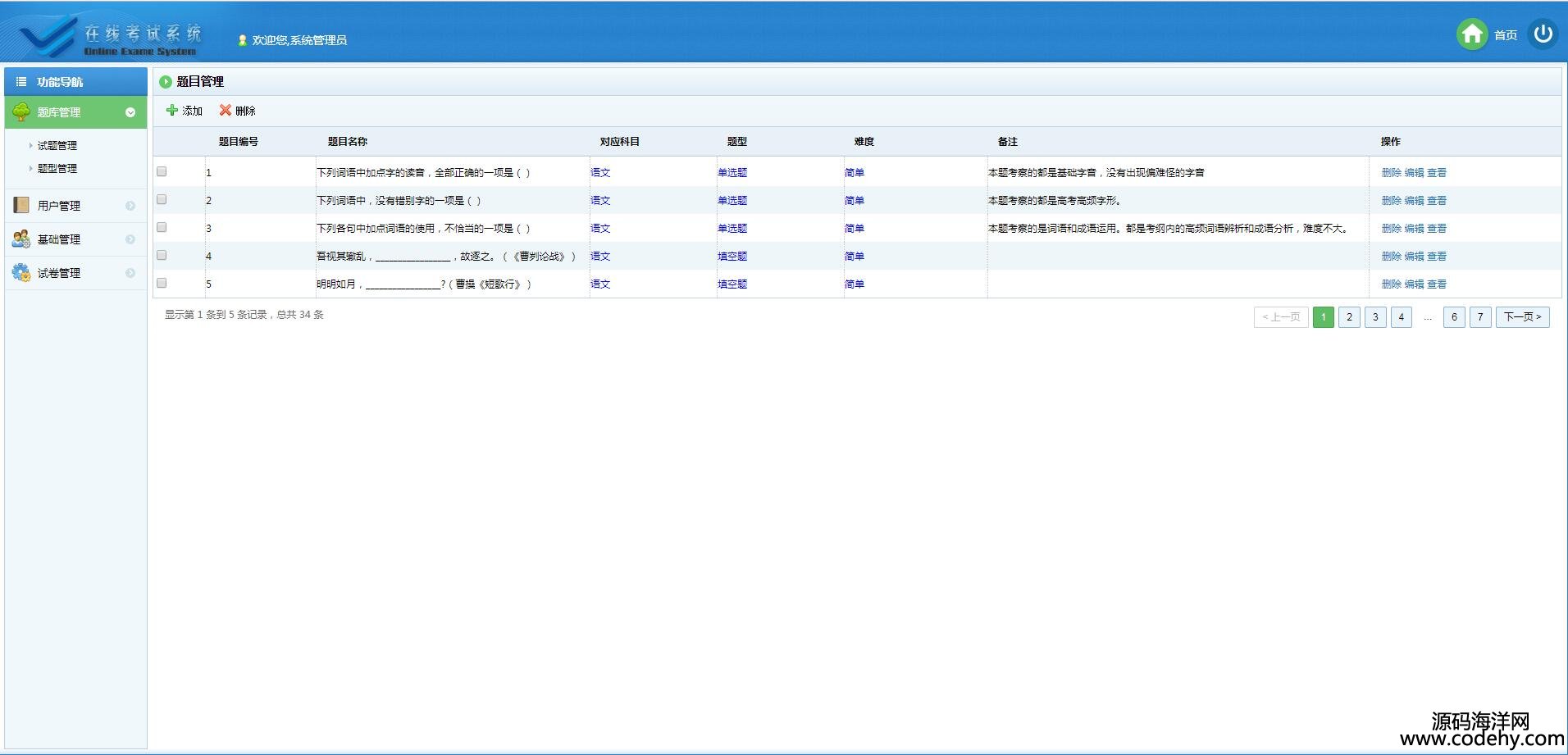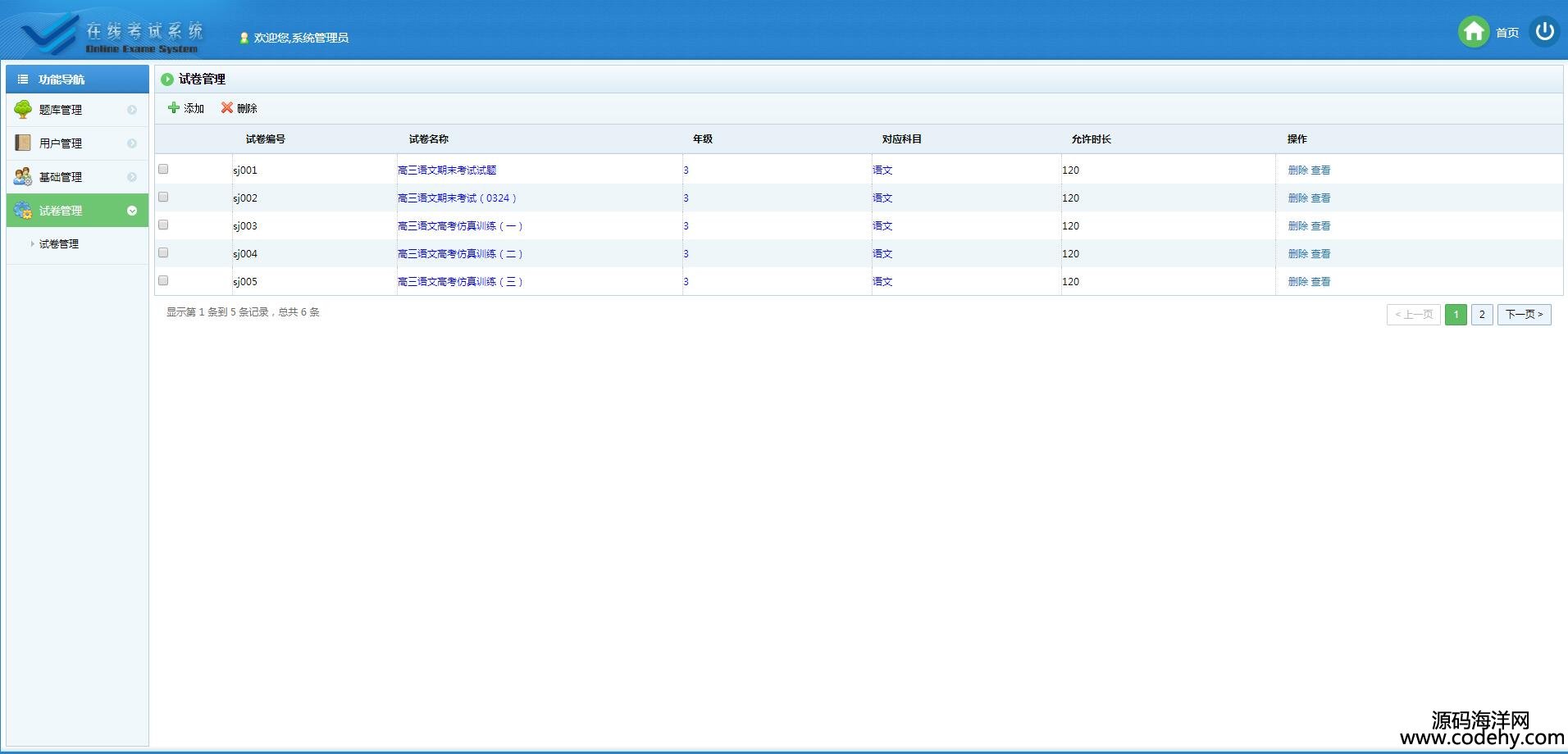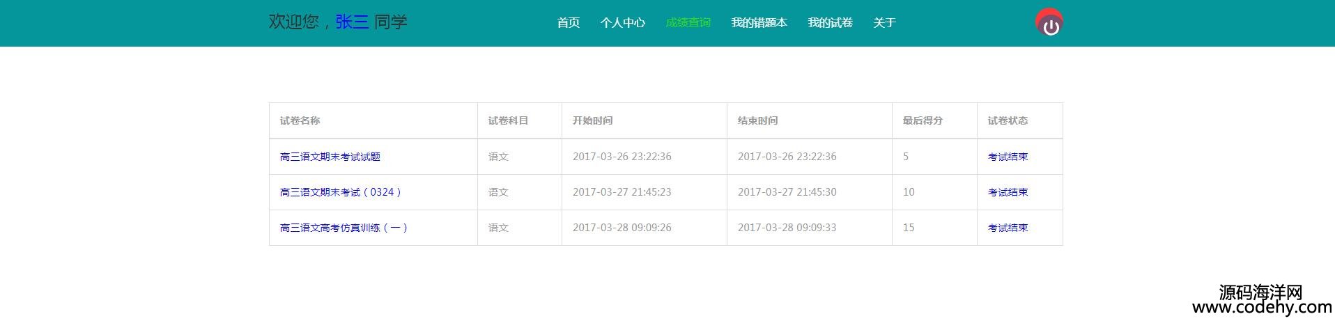 、用戶管理、在線考試、在線組卷、成績查詢以及題庫維護幾部分。