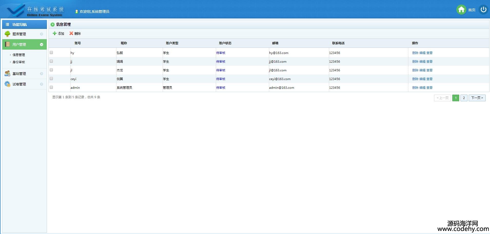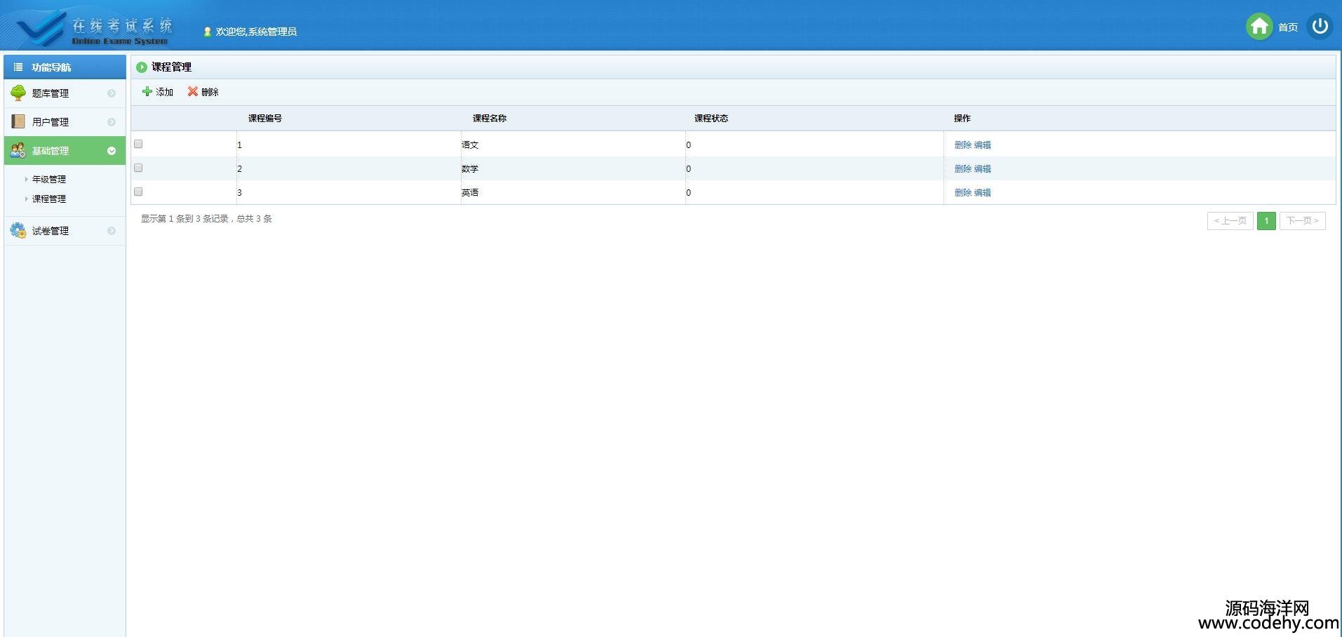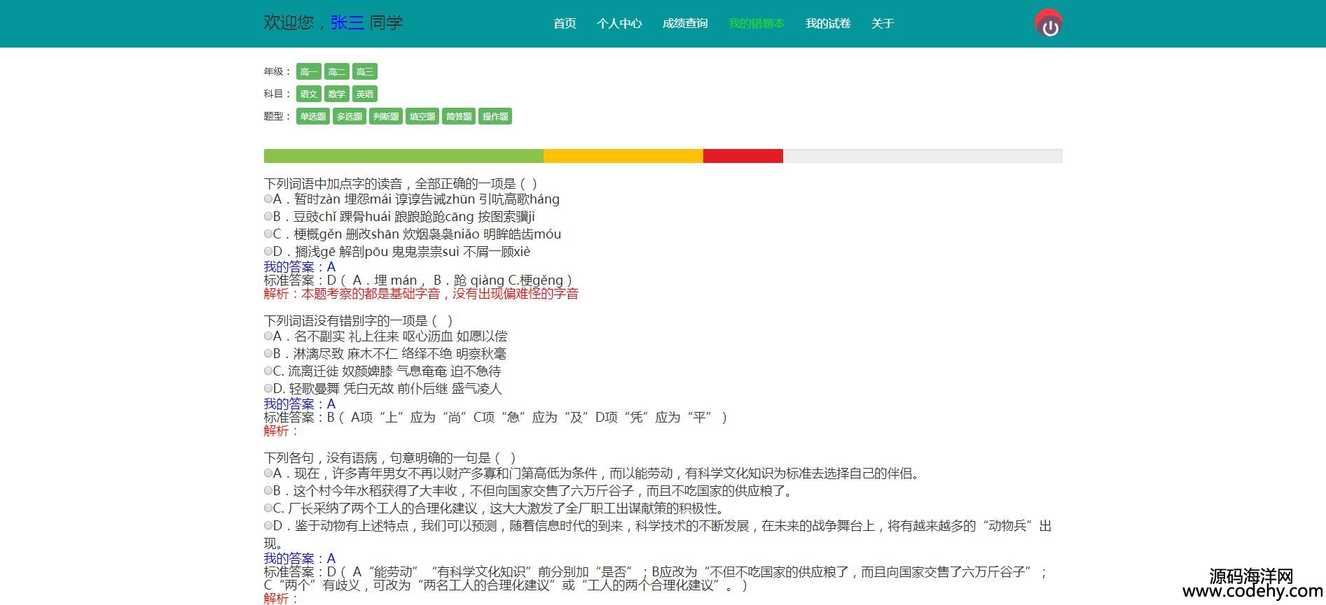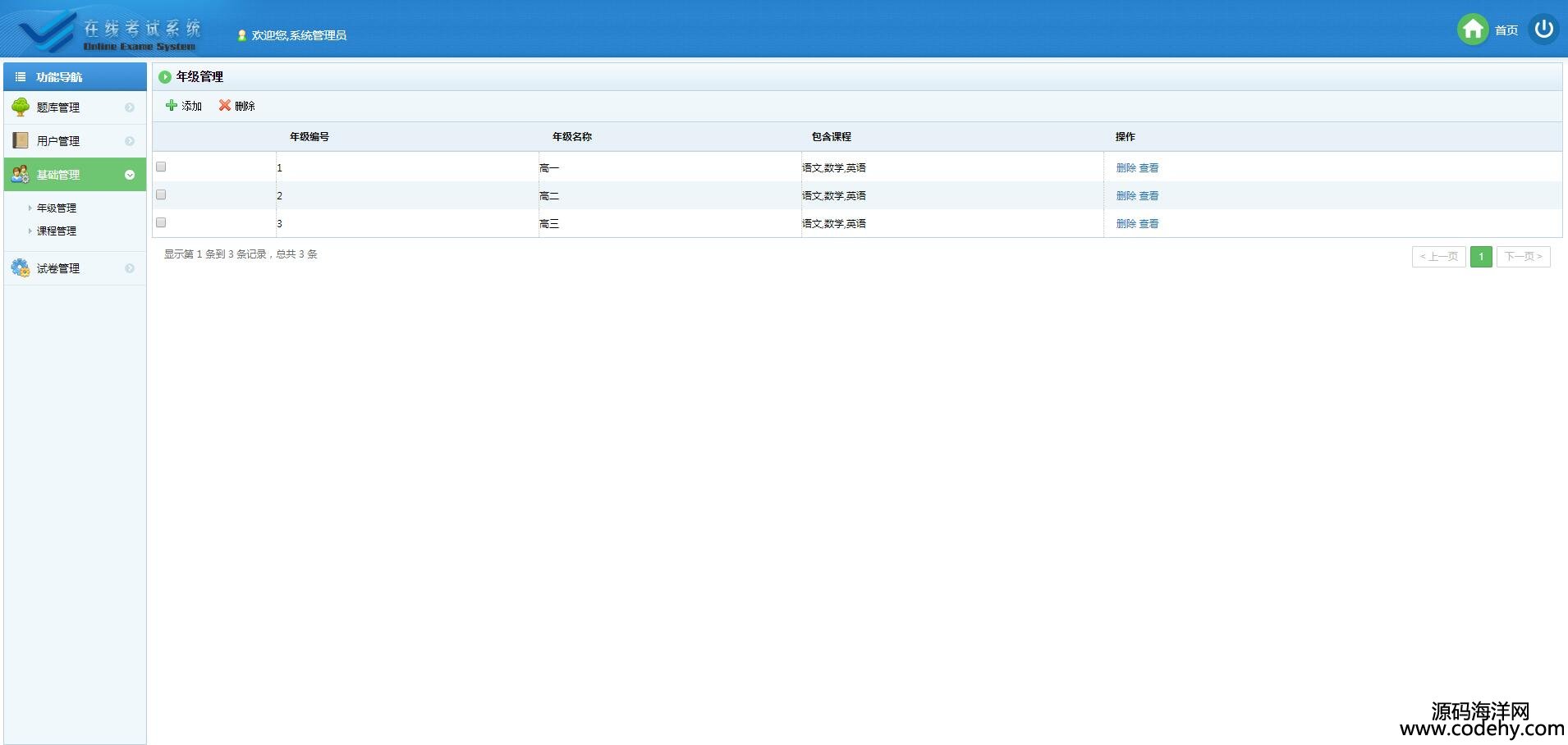 、用戶管理、在線考試、在線組卷、成績查詢以及題庫維護幾部分。
