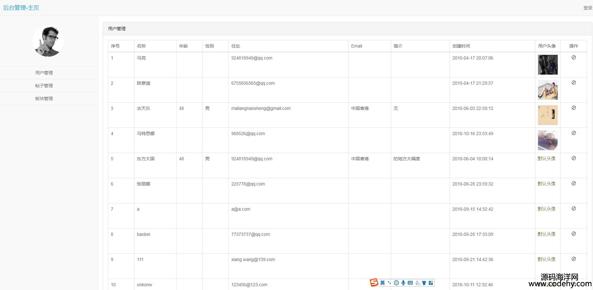 2,管理員登錄管理員系統后可以管理用戶(查看用戶、刪除用戶信息)、管理帖子(