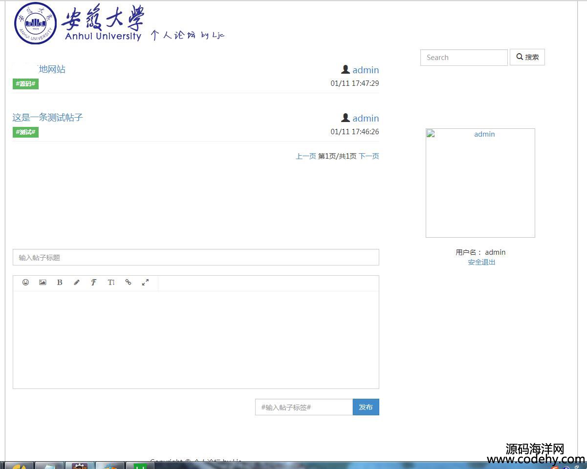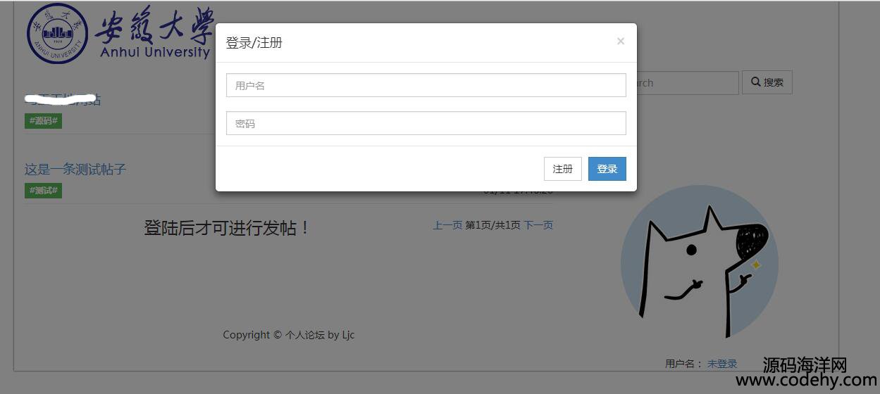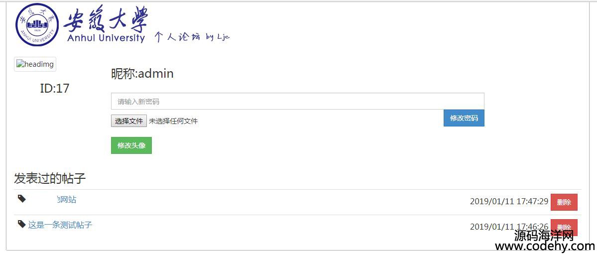 主要功能有:用戶注冊、用戶登錄、用戶發表帖子和個人信息更改等,功能不是很多,是一個簡單的小項目