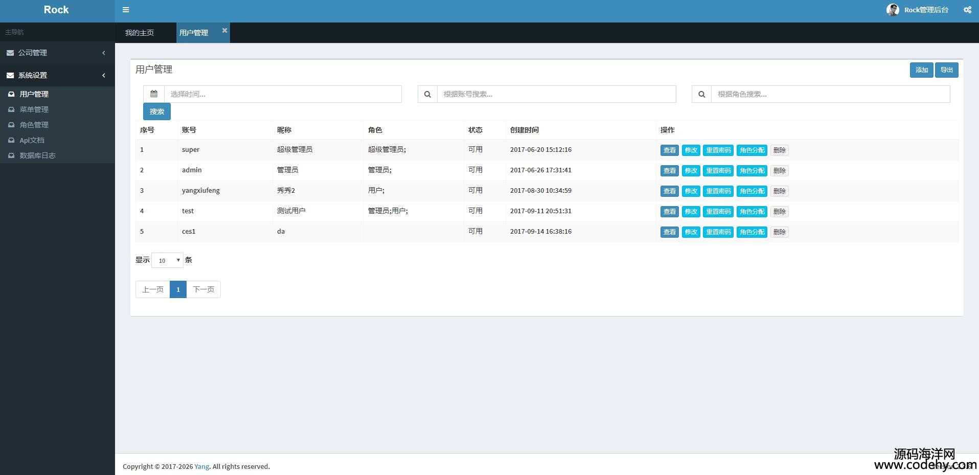 - 前端UI框架:JQuery2.2.3 + bootstrap3 + AdminLte2.3.6 + Ztree