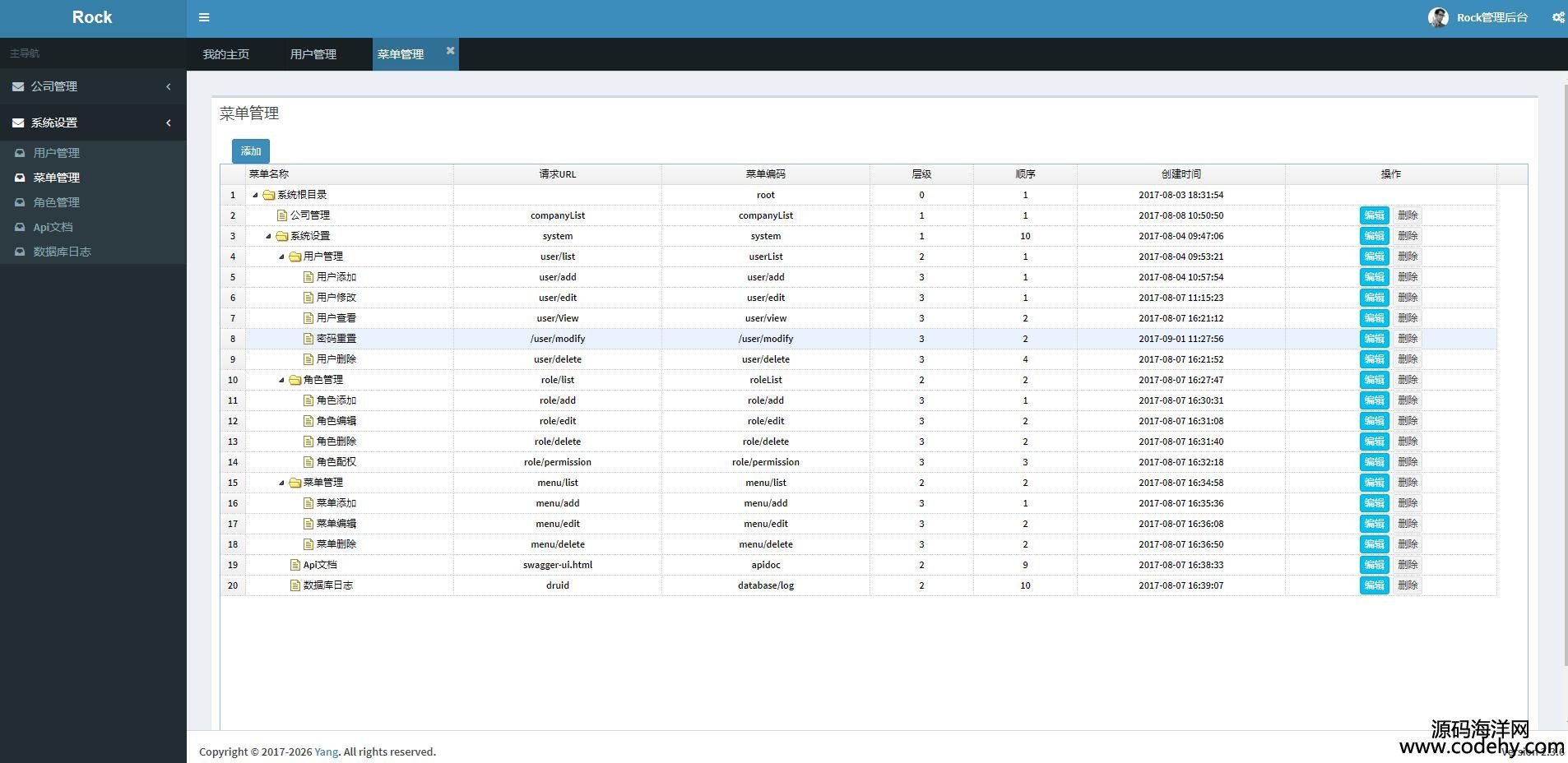 后臺管理(Springboot+shiro+freemarker+mysql)。擁有基礎的菜單管理、用戶管理、角色管理等,菜單管理動態生成菜單、權限內容,開發者可以直接拿來使用。項目結構清晰、通俗易懂,是做一個后臺管理系統的最佳選擇,同時也可以作為任何系統的基礎腳手架。