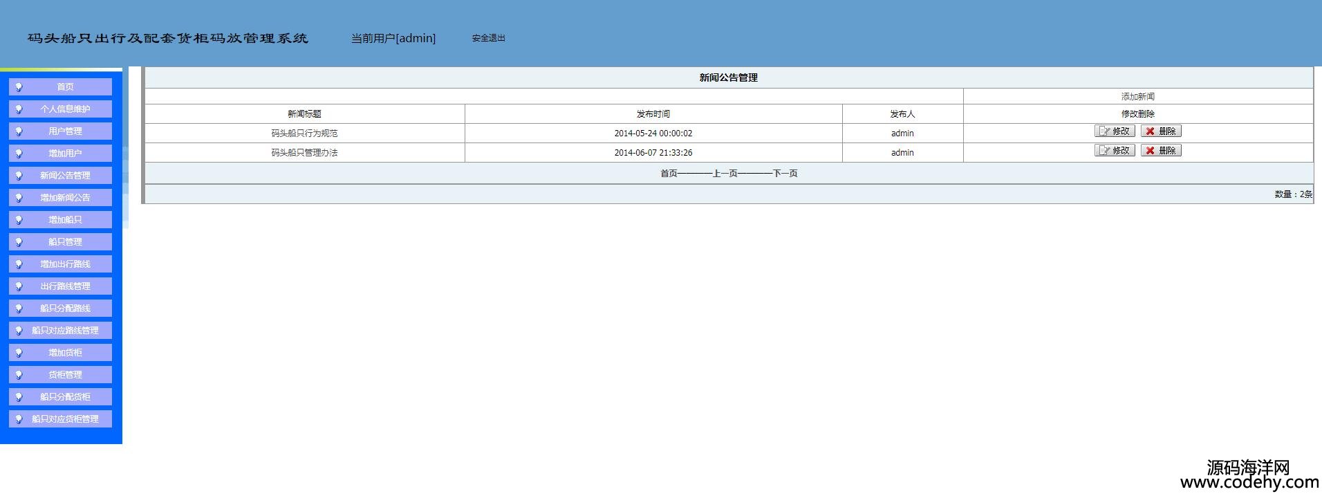 該模塊實(shí)現(xiàn)路線(xiàn)的增加,刪除和修改,以及船只與路線(xiàn)關(guān)系的管理
