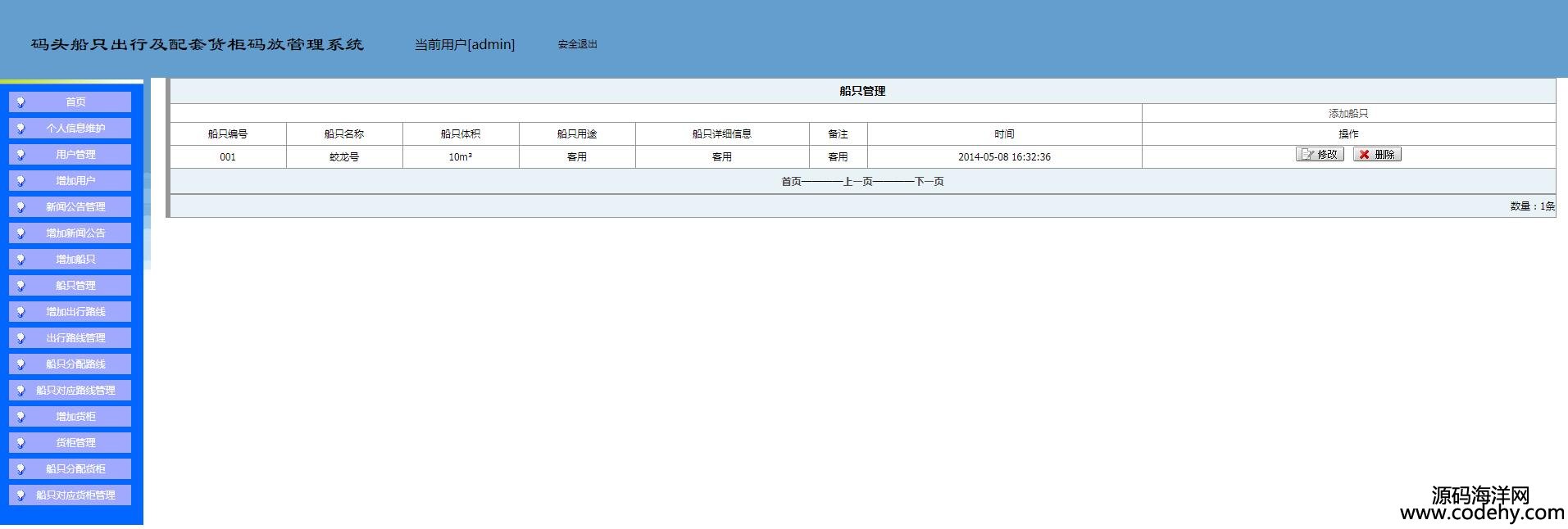 該模塊實(shí)現(xiàn)船只的增加,刪除和修改