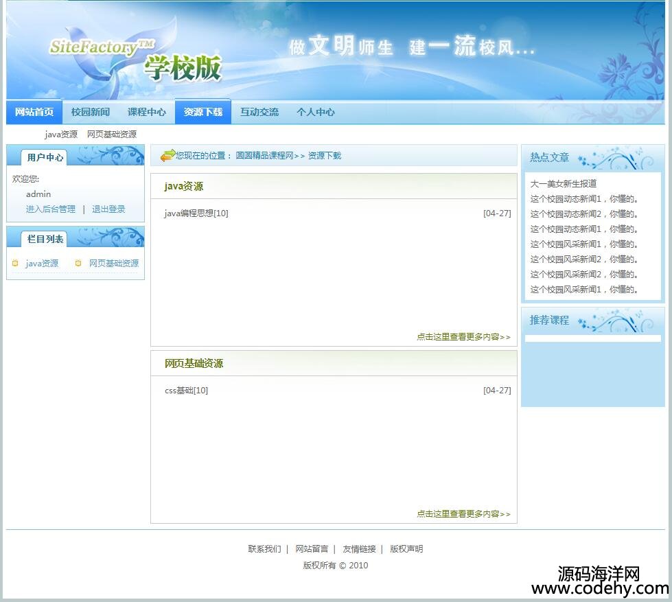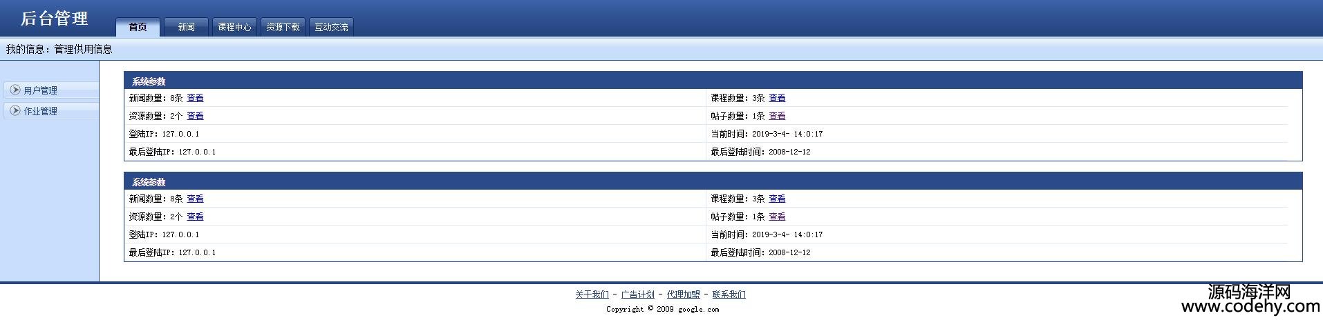 該系統實現了課程課件發布瀏覽下載、互動交流、資源發布下載等功能,采用了比較流行的ssh框架,數據庫采用當下最流行的mysql關系型數據庫,非常適合學習Java開發的同學來參考學習,代碼質量還是很高的。
