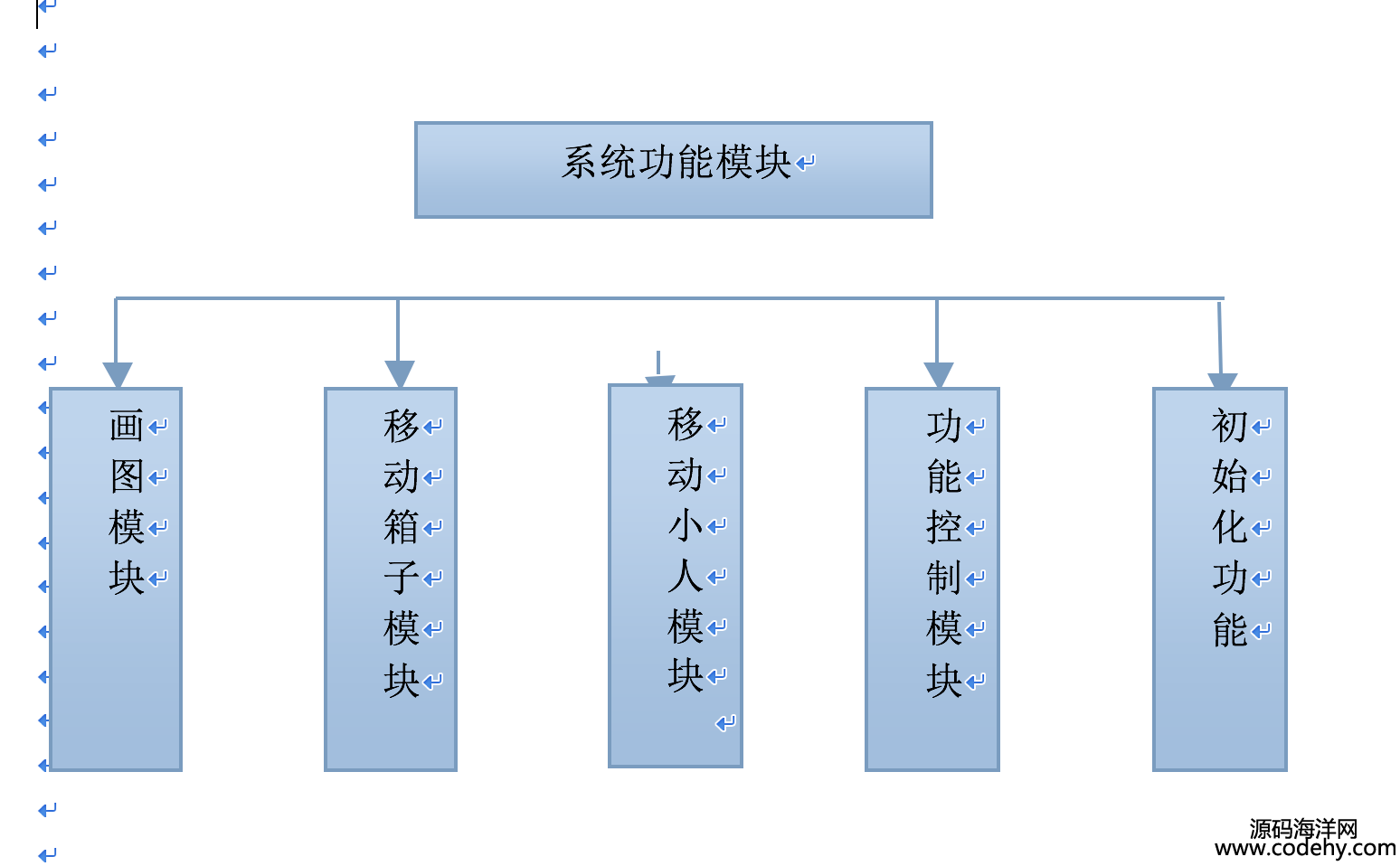 (2)畫圖模塊: 該模塊主要是被其它模塊調用,用于畫墻、在空地畫箱子、在目的地畫箱子、畫小人和畫目的地。