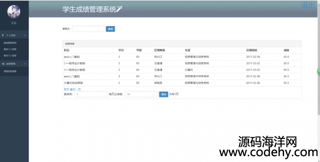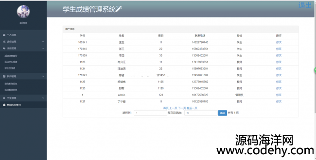 教師角色:可以查看修改個人信息,課程管理,成績管理,學生信息管理