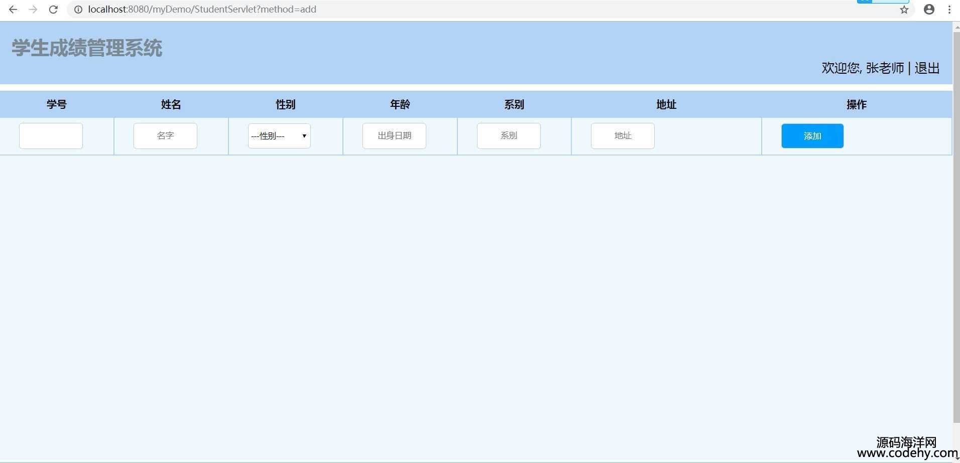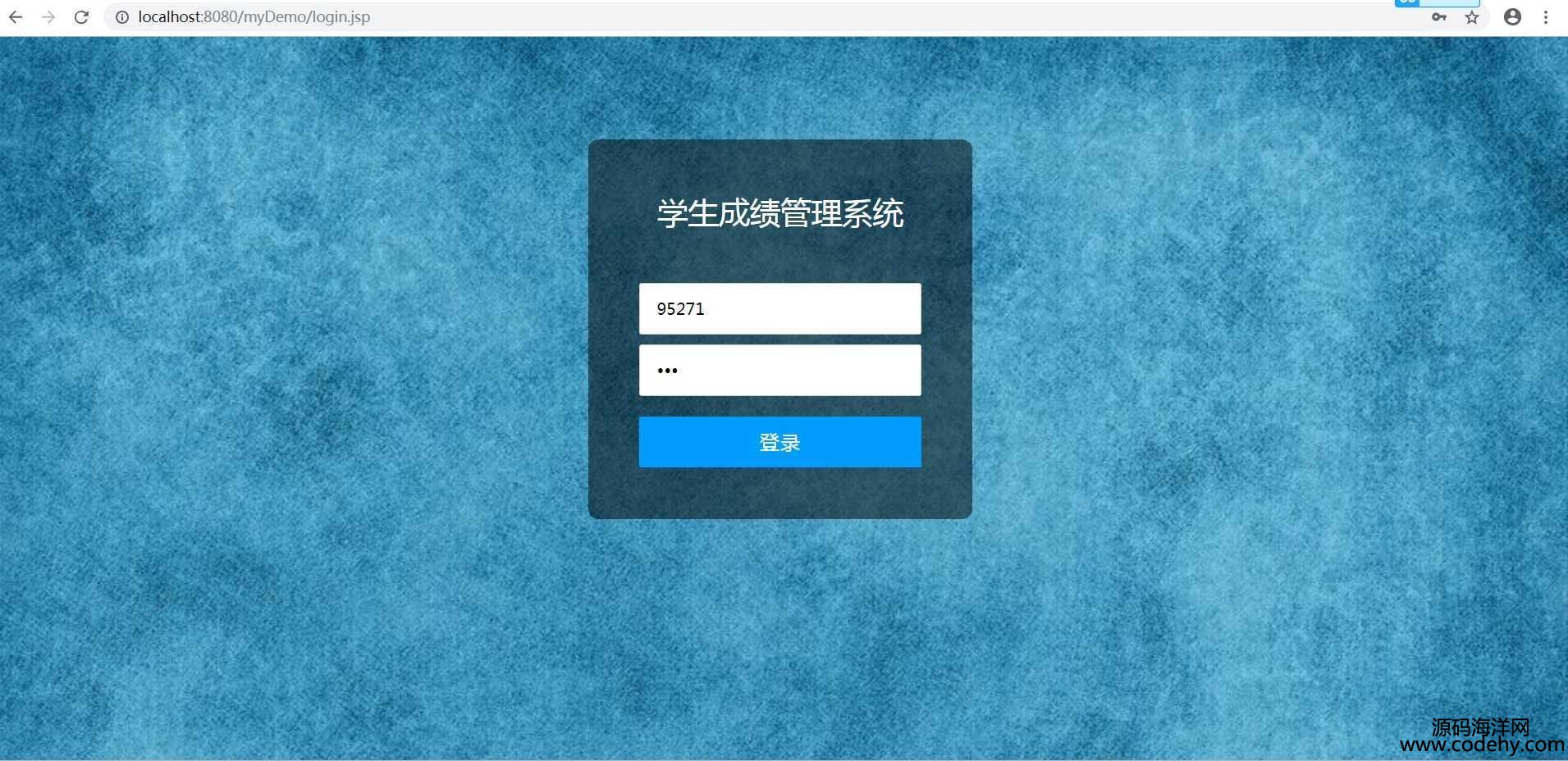 java學生成績管理系統 源碼,登錄地址localhost:8080/mydemo/login.jsp,用戶名為數據表中的ID值