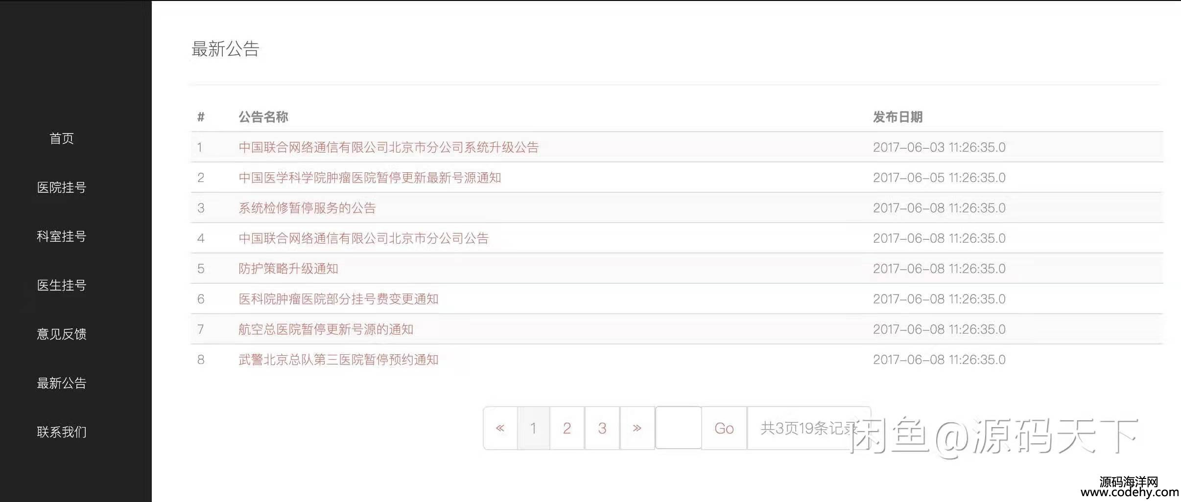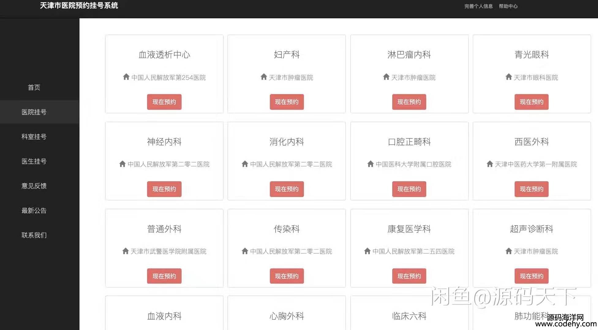 實現基本預約管理,預留后臺管理系統接口,提供科室查詢功能。
