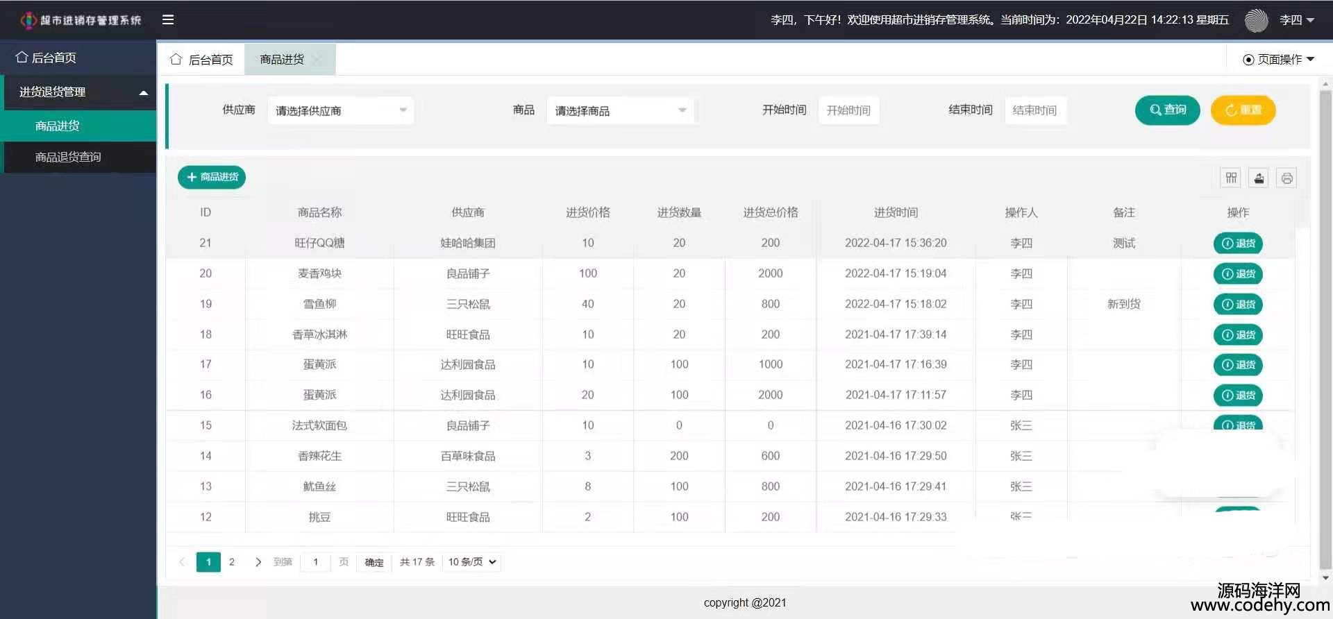 超市 進銷存 管理系統(tǒng)。角色分為管理員,進貨管理員,商品管理員。后臺springboot。前端html+layui。