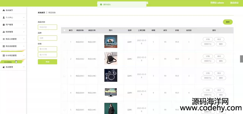 模塊:首頁、個人中心、用戶管理、商品管理、商品信息管理,商品分類管理、秒殺商品管理