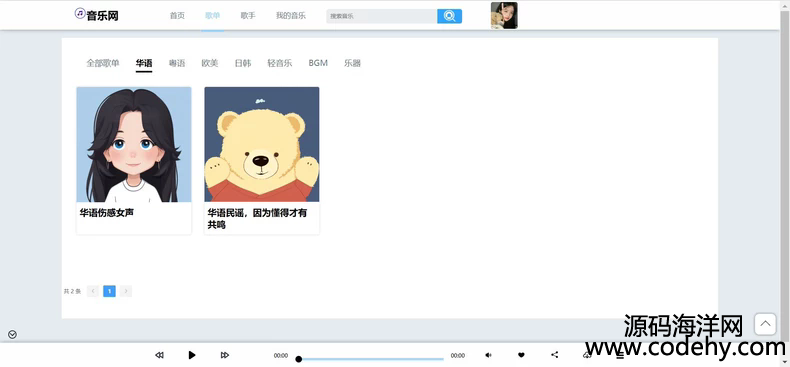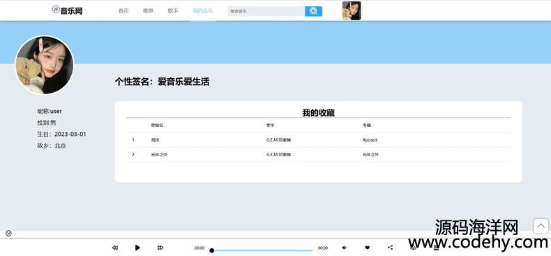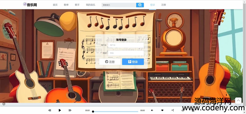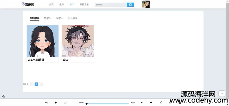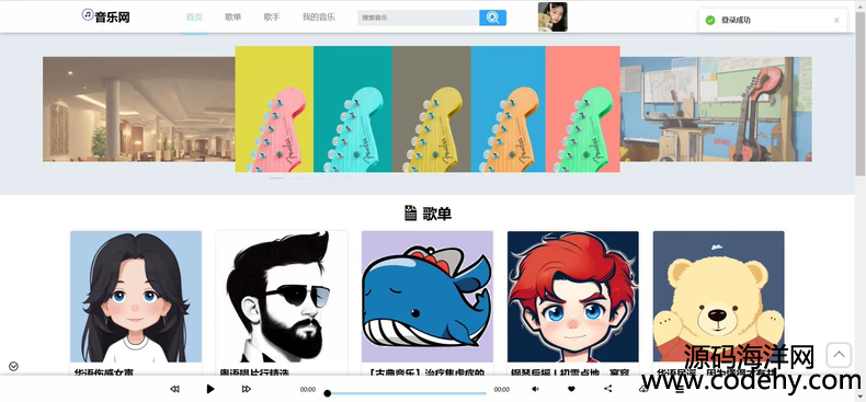 ②:游客模塊:歌曲播放器(播放歌曲)、歌手列表、歌單列表、我的音樂、歌曲播放、歌曲收