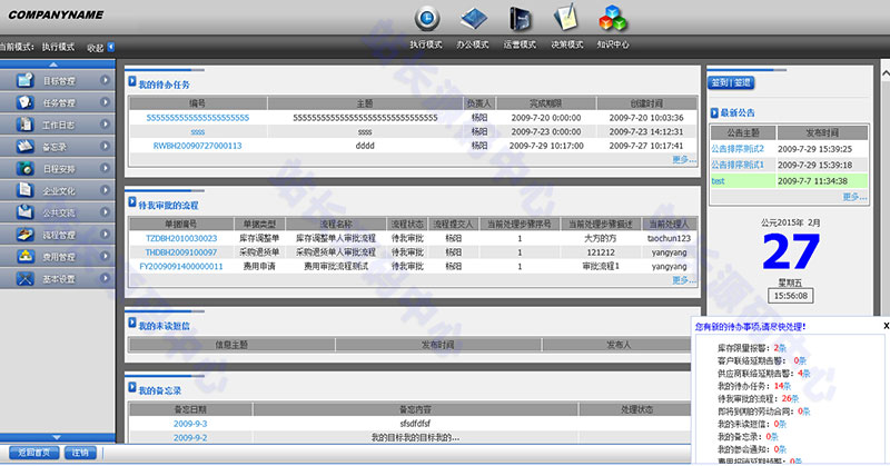 通過動態的管理個人及部門的目標任務和績效,提高全員工能動性;日程安排只能提醒、建立暢通公共交流渠道。實現及時、準確、快速、高效的信息溝通和企業文化共享平臺。