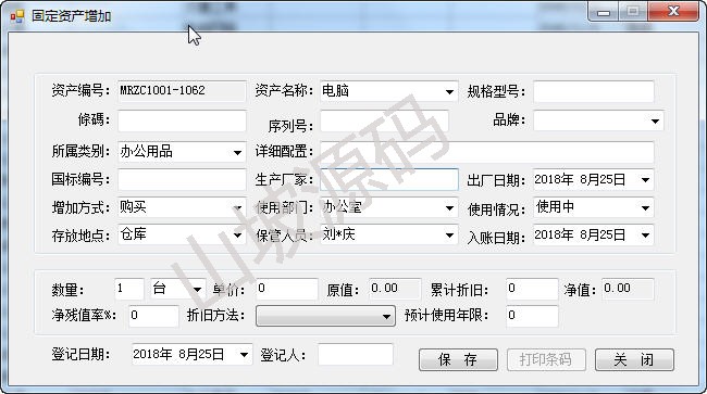 帶條碼打印的固定資產(chǎn)管理系統(tǒng)源碼 c/s架構(gòu)