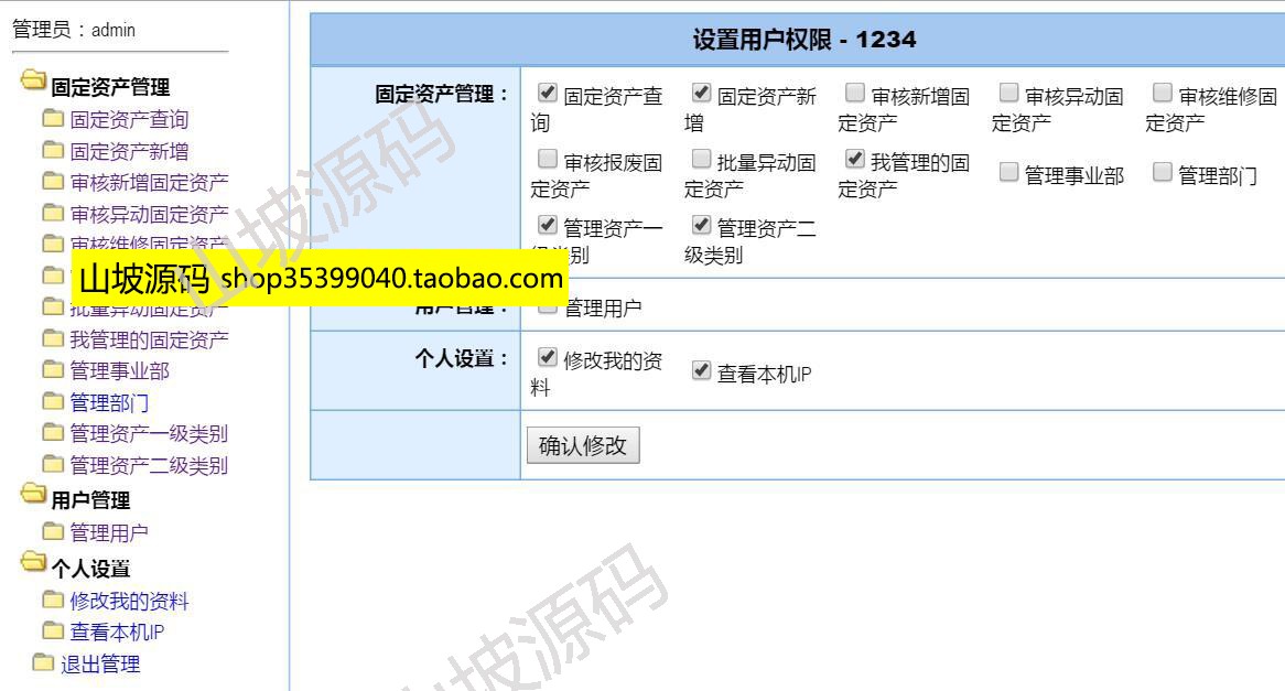 管理用戶,點擊權限,可設置每一個用戶的權限