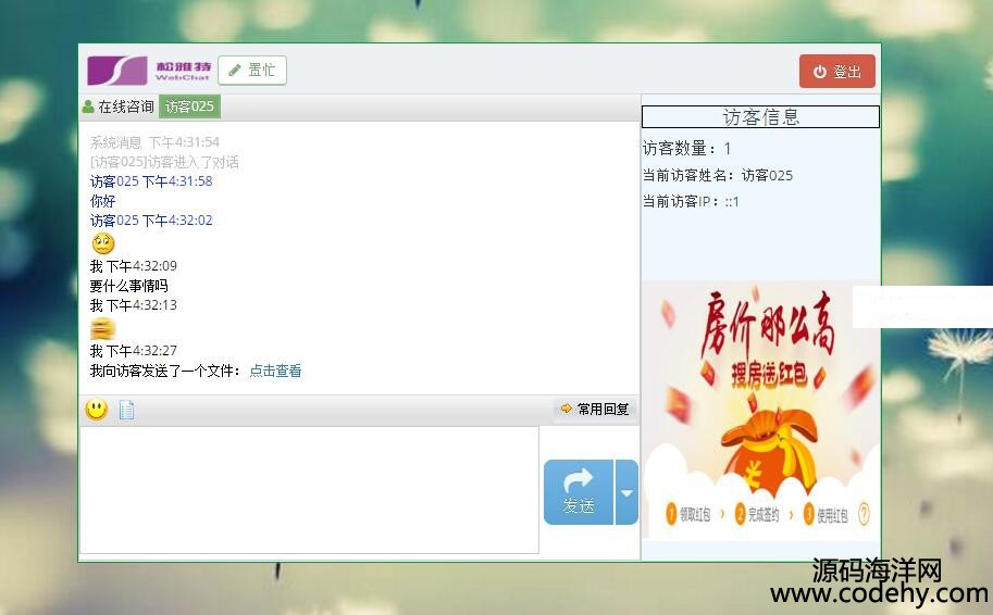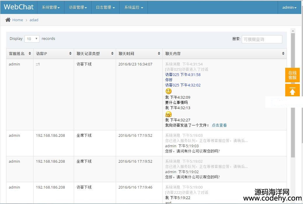 需要客服人員先登錄系統(tǒng),然后訪客才可以點(diǎn)擊聊天