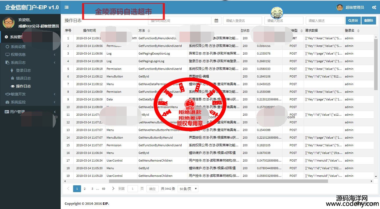 2、系統采用前后端分離模式開發,后端使用最新的Core2框架,使用MongoDb作為緩存工具,前端使用Adminlte框架進行二次開發,可自