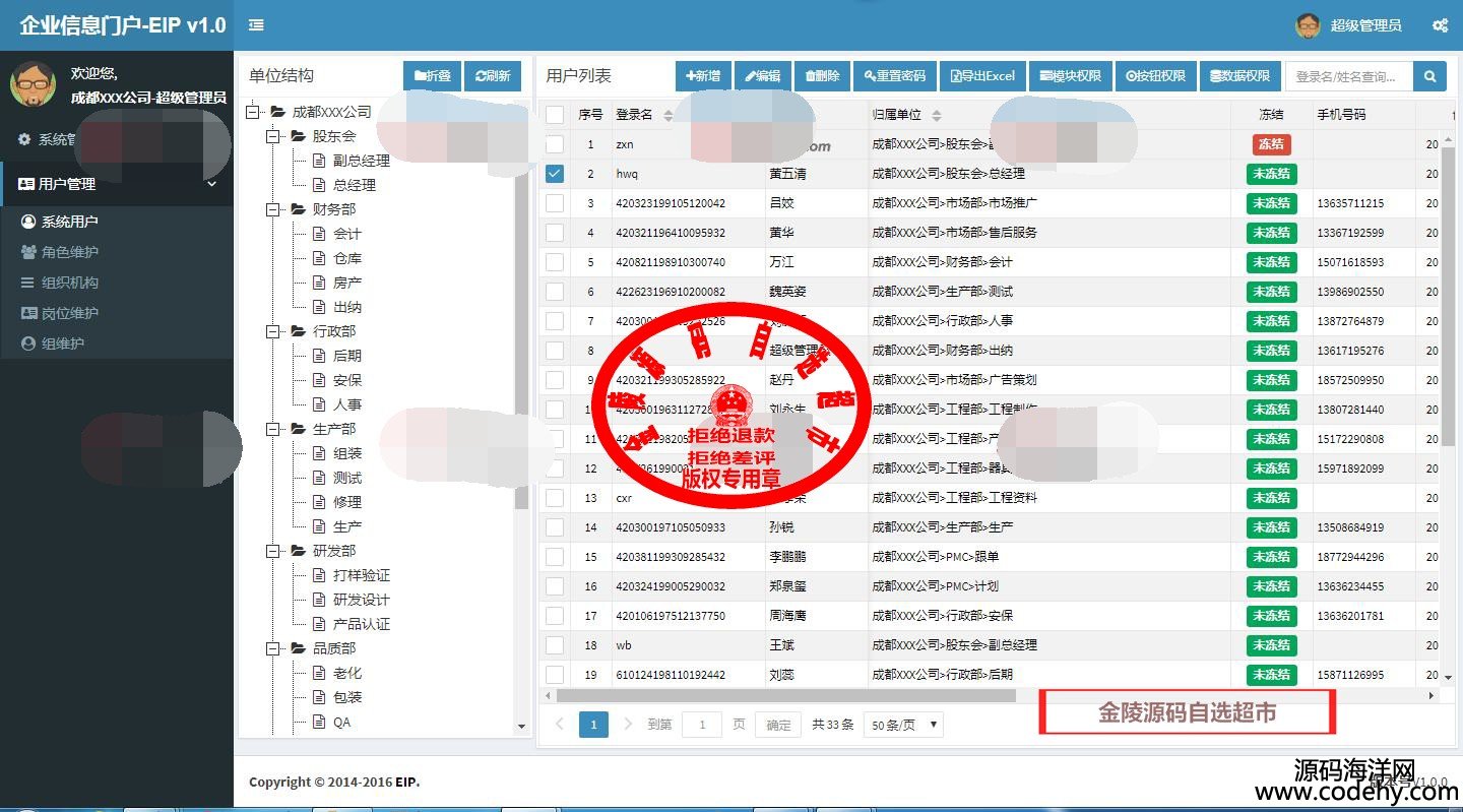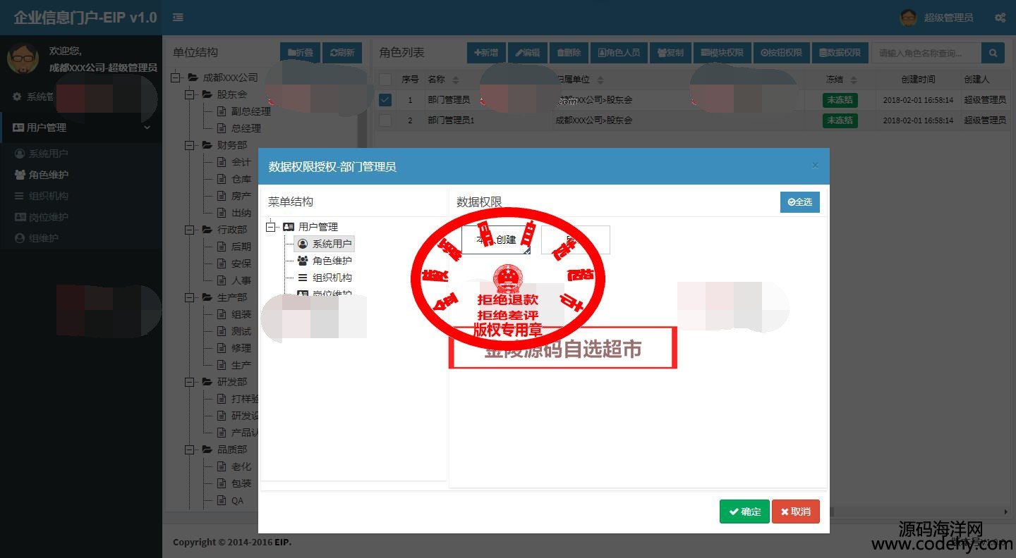 2、系統設計為通用平臺框架,權限模塊已成熟,可用作ERP、OA、CRM等系統的基礎開發框架,具有成熟的數據訪問(Dapper)、作業調