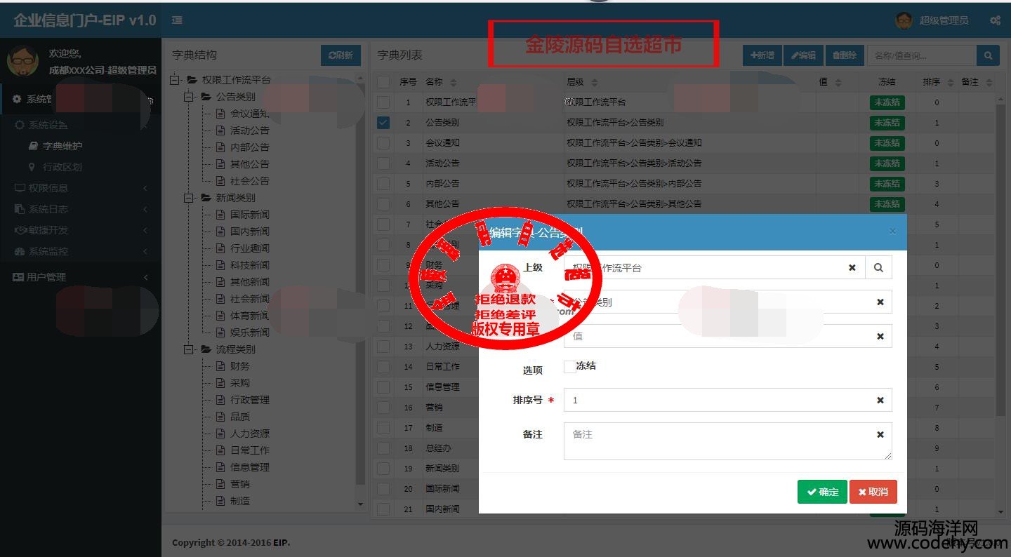 2、權限控制:針對系統中大多數權限控制情況,系統中可針對角色、組織機構、崗位、工作組進行授權。權限由粗粒度到細粒度均可