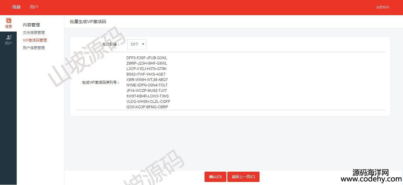 會員分為普通會員和VIP會員。后臺可以生成VIP兌換激活碼。