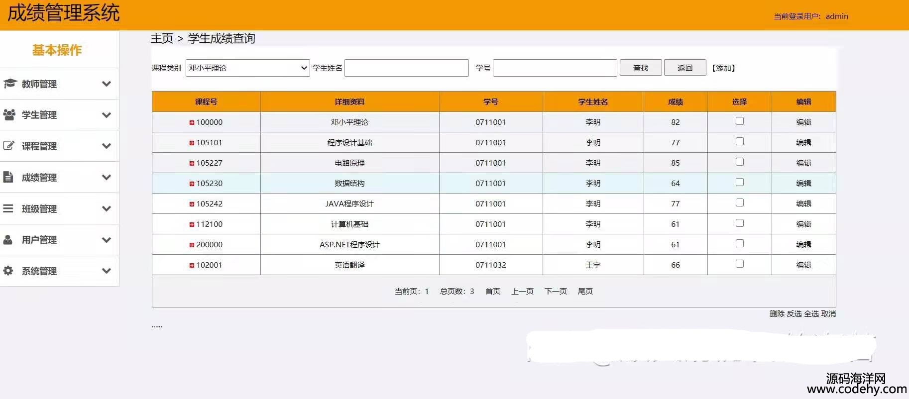 基于ASP.NET和sql server開發的簡單學生信息管理系統,實現了學生管理、課程管理、成績管理、班級管理、教師管理、用戶管理等基本增刪改查功能