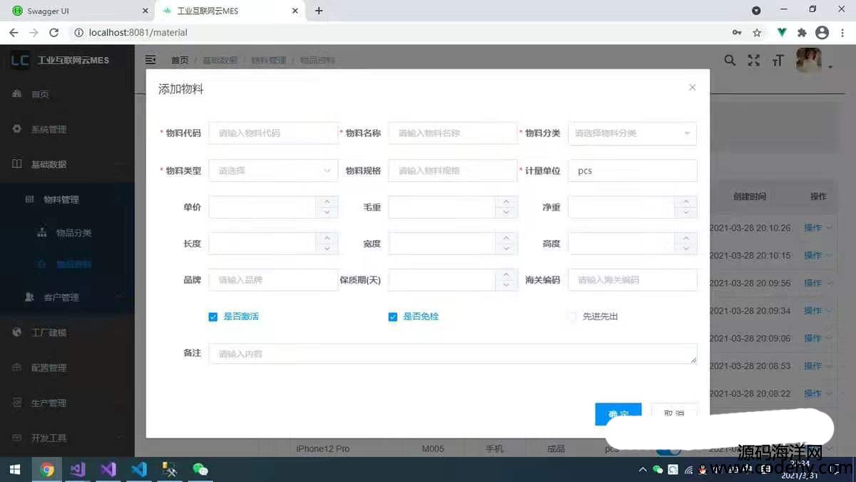 工業(yè)互聯(lián)網(wǎng)平臺云MES系統(tǒng),前后端分離,前端基于vue2.6.0,后端基于.NetCore3.1,支持MySQL、SQLServer、Oracle多數(shù)據(jù)庫。支持跨平臺,模塊化,技術(shù)一流,頁面友好,開發(fā)效率高,配套代碼生成器,非常適合企業(yè)或個人做項目使用,同時可以用它開發(fā)WMS、SRM、EMS、QMS、ERP、APS、CRM、PLM等工業(yè)軟件,送全部源碼