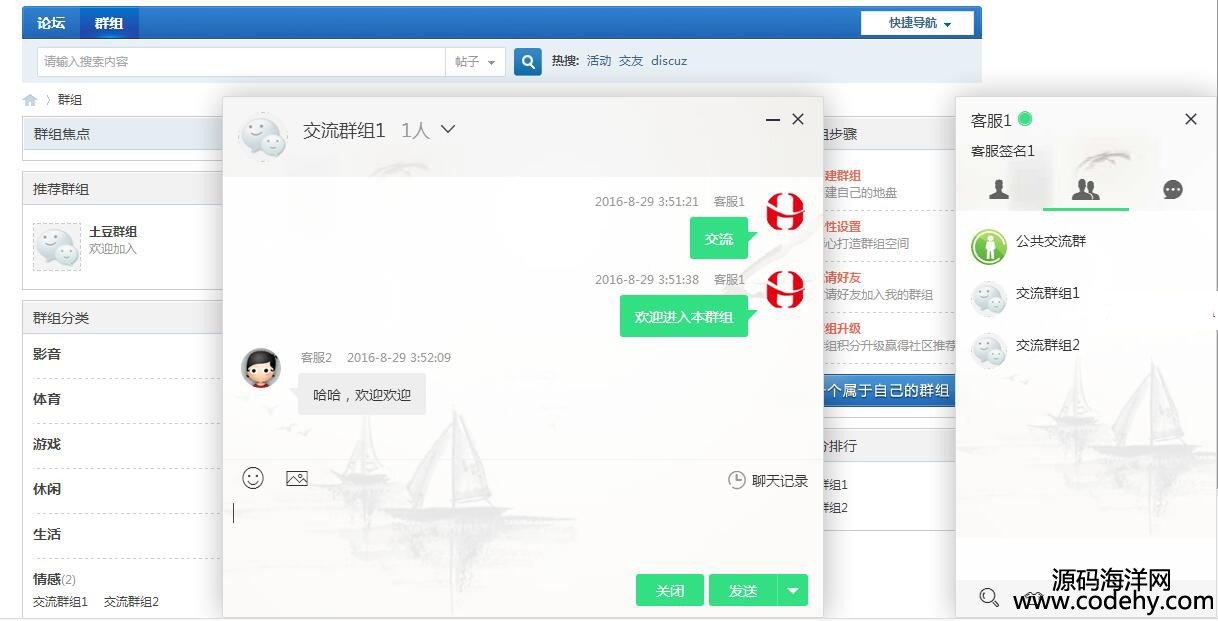 論壇功能包括好友列表,客服系統(tǒng),公共群聊,論壇群組,離線消息,消息提示聲音,帖內(nèi)快速添加好友,快速發(fā)送即時(shí)消息等;