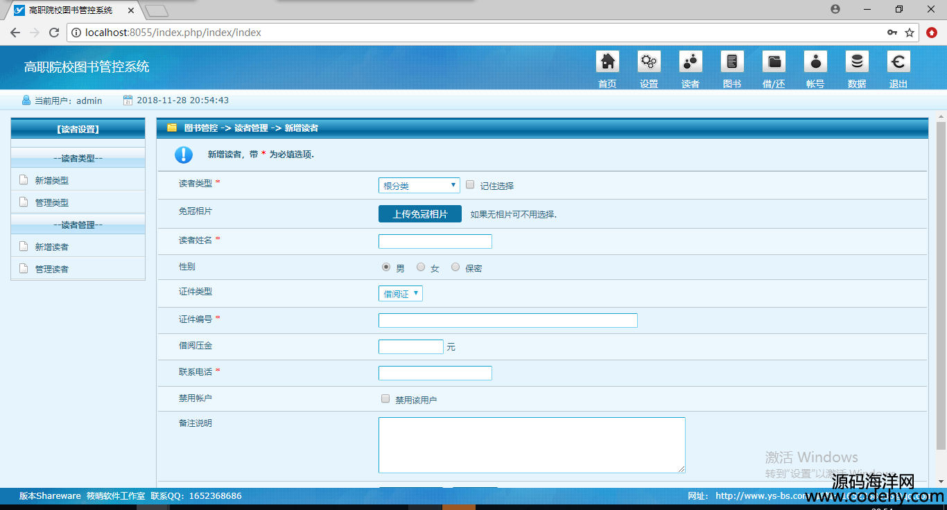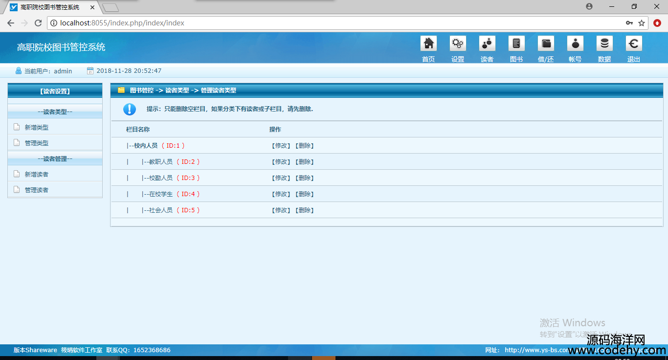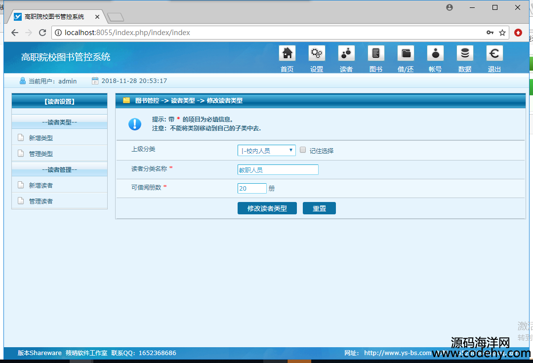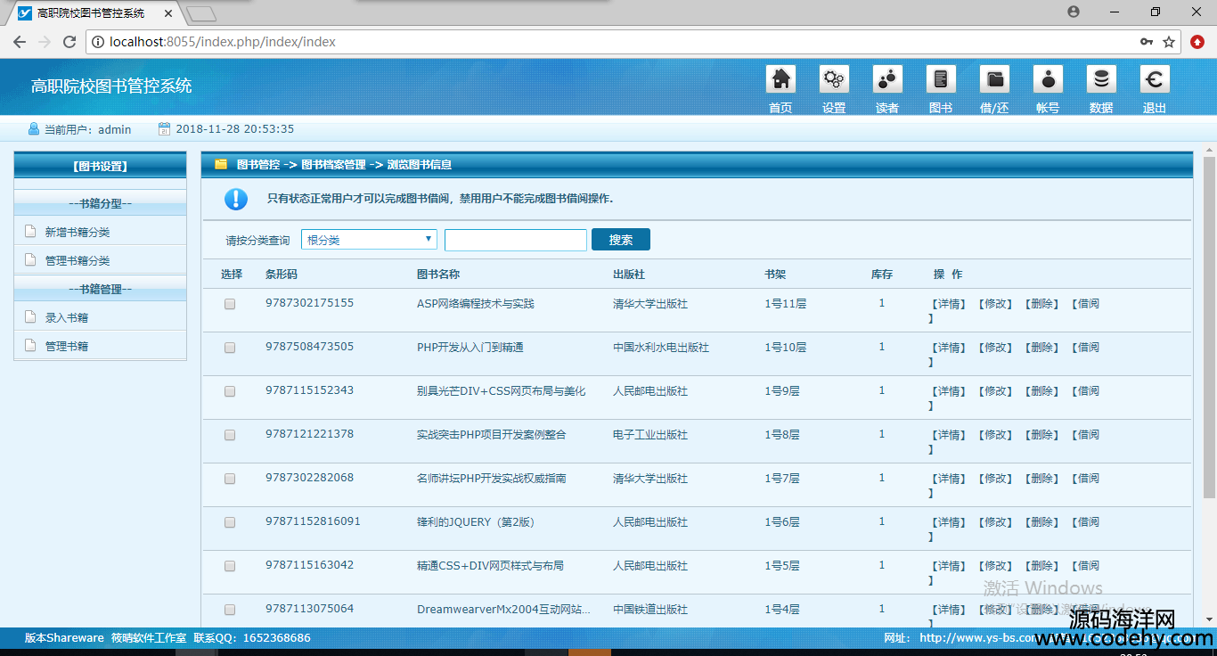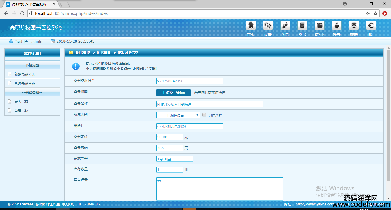 1304-php+mysql圖書館管理系統源碼
