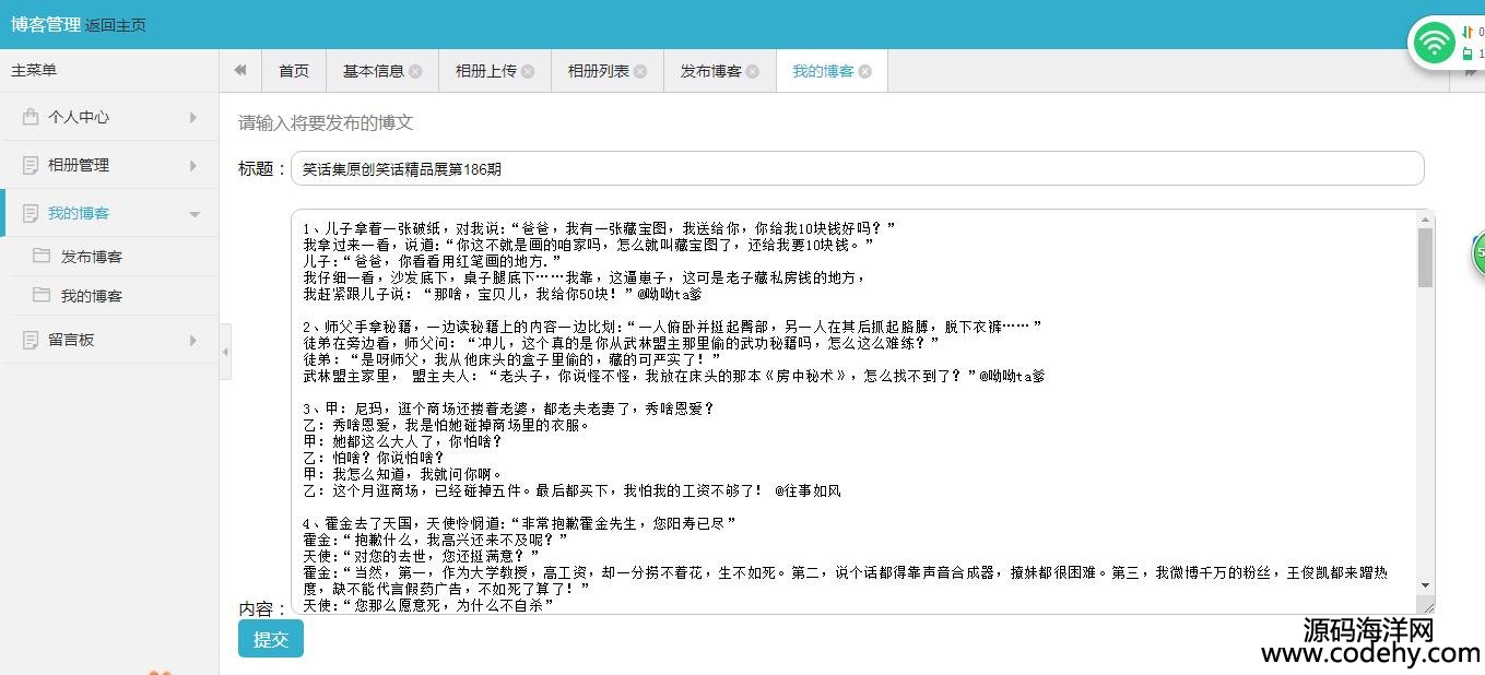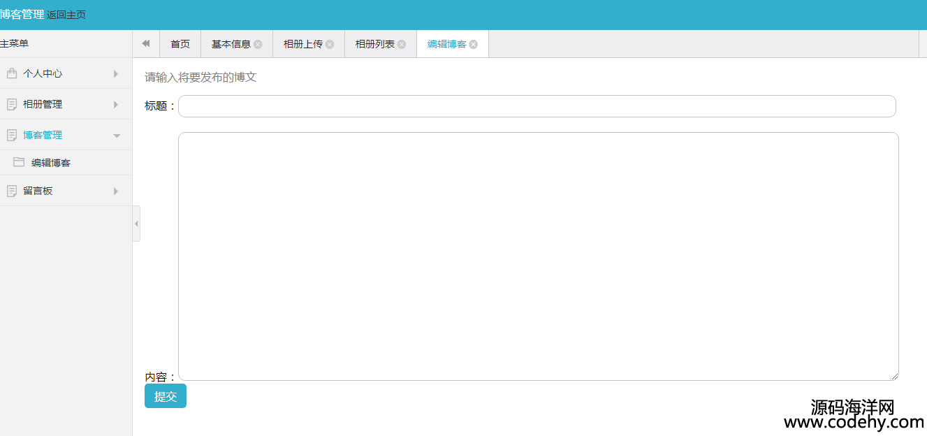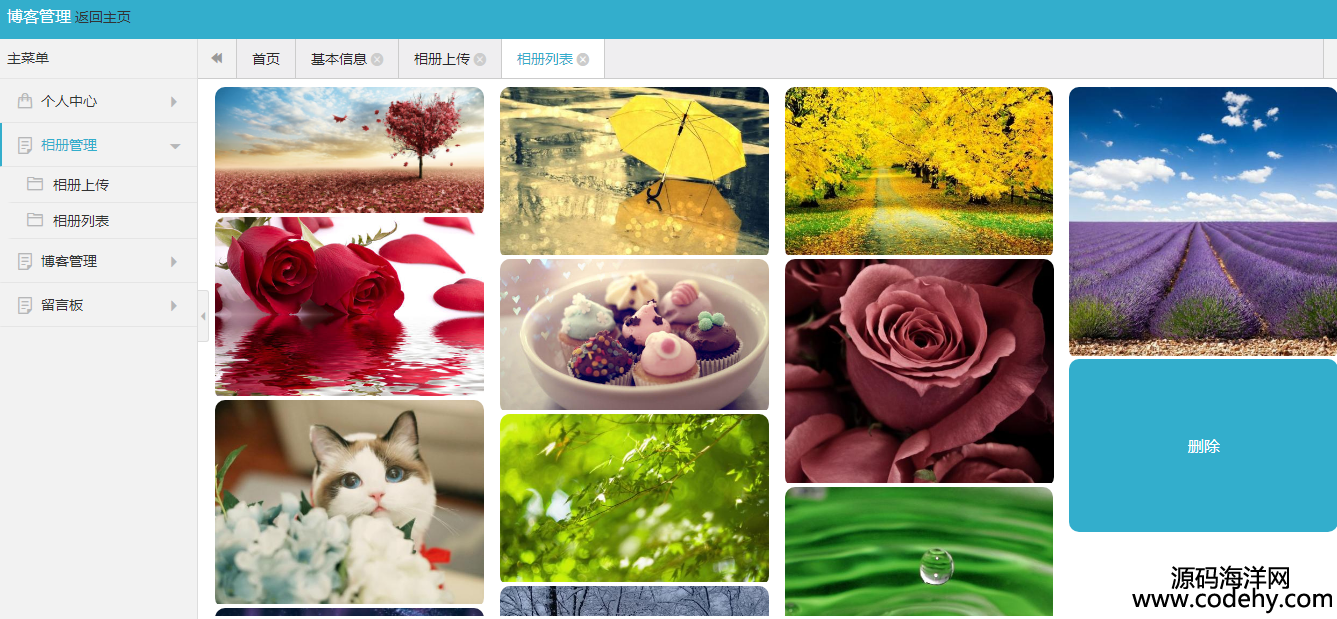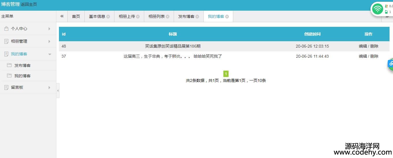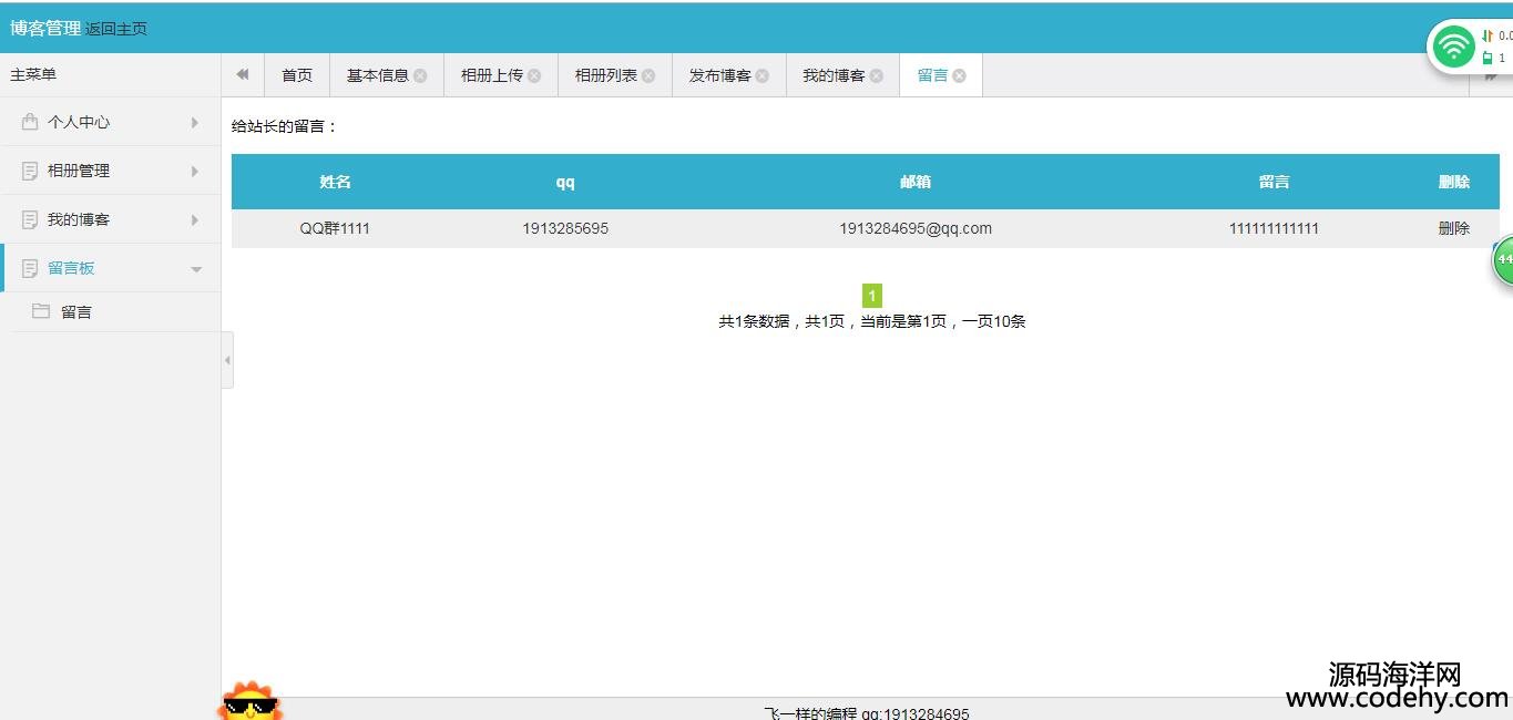 個人中心:個人基本信息修改,頭像上傳(本地上傳),上傳照片(本地上傳),照片分頁展示,刪除照片,發布博客,博客編輯和添加,刪除博客,站長查看留言,博客分頁展示