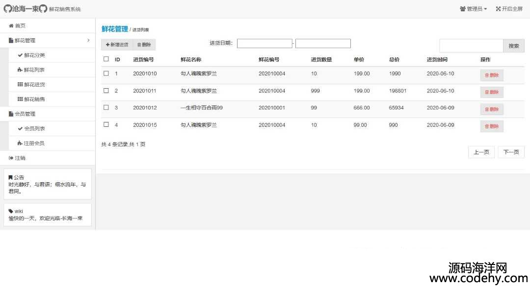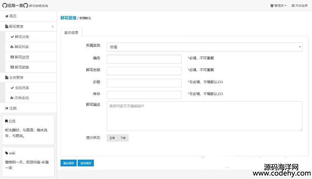 3、鮮花管理:新增鮮花、鮮花列表、鮮花編輯、鮮花刪除、查詢鮮花
