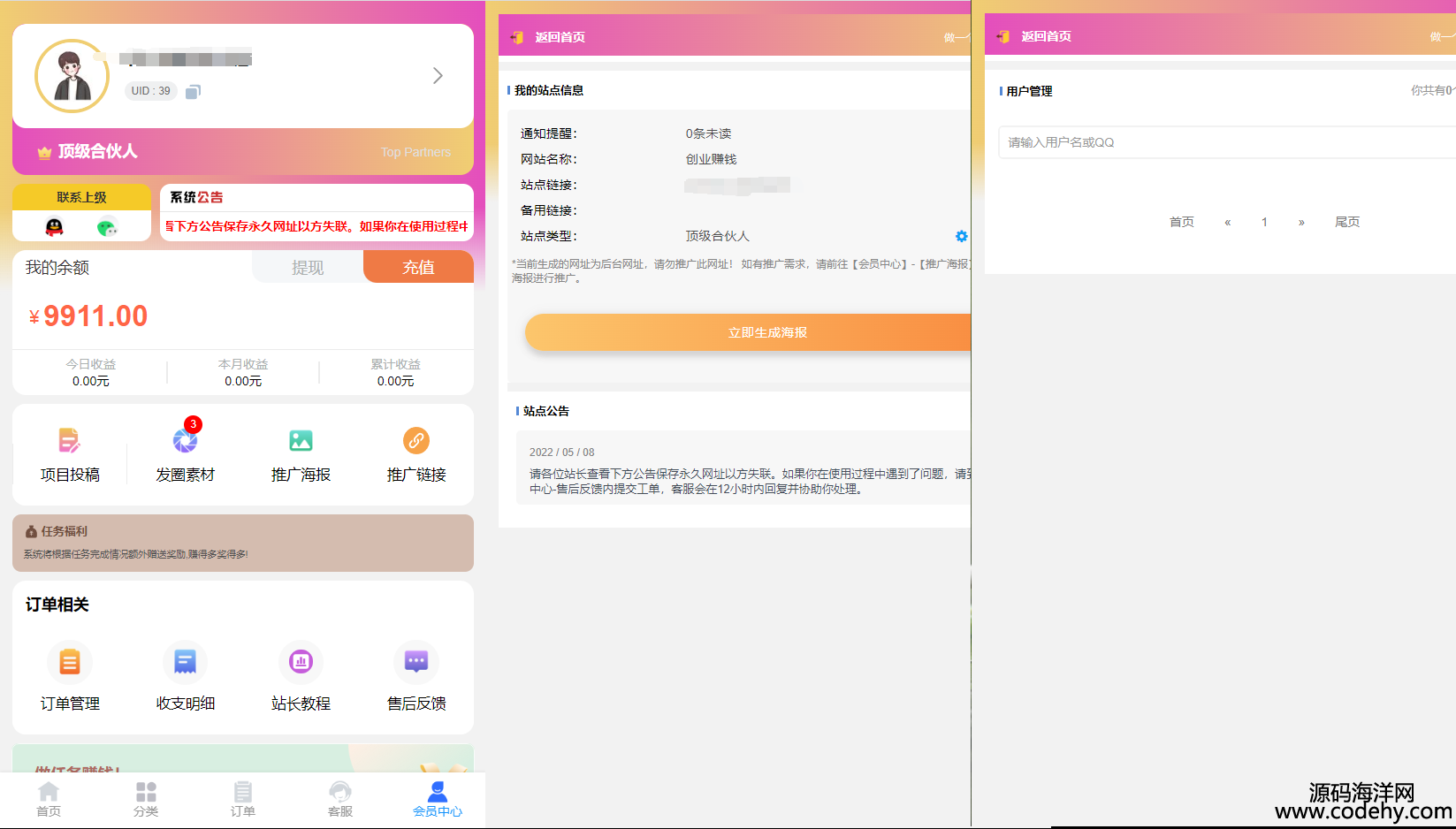 其余員工添加、每日簽到、推廣功能、抽獎功能、文章功能、發卡功能請您購買后親自體驗,這里不做過多介紹