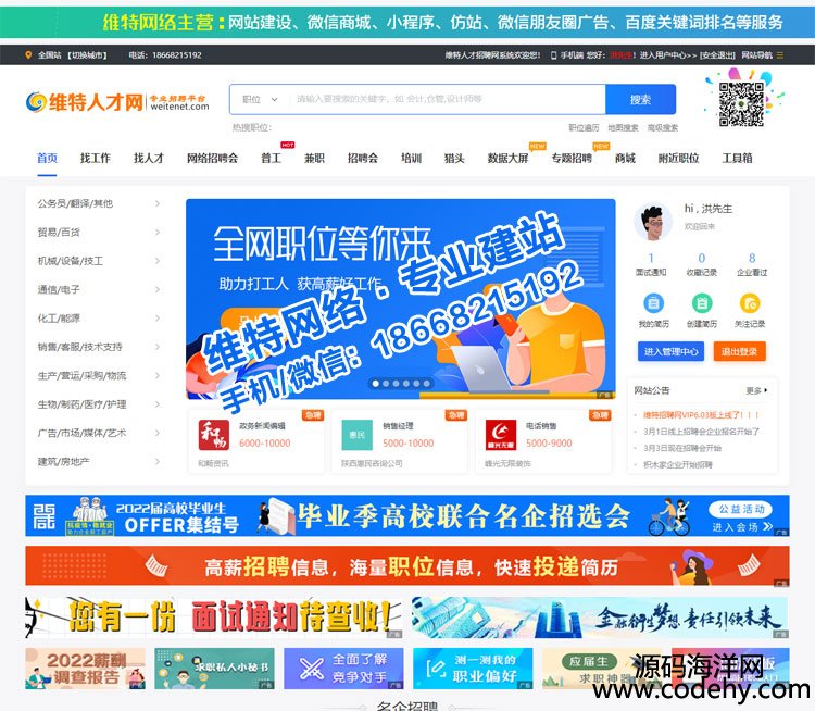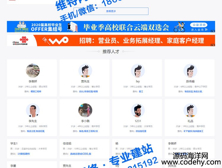 6399-PHP人才網(wǎng)站源碼系統(tǒng)人力就業(yè)招聘網(wǎng)6.03VIP版公眾號(hào)版整站多城市