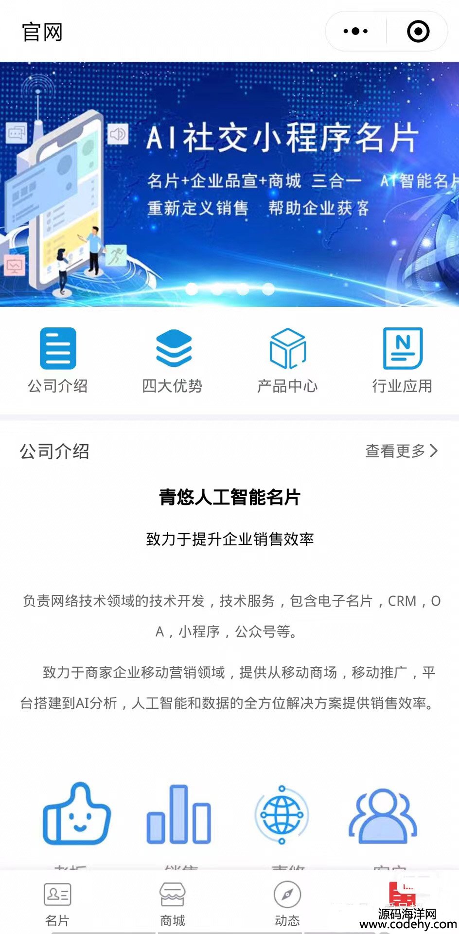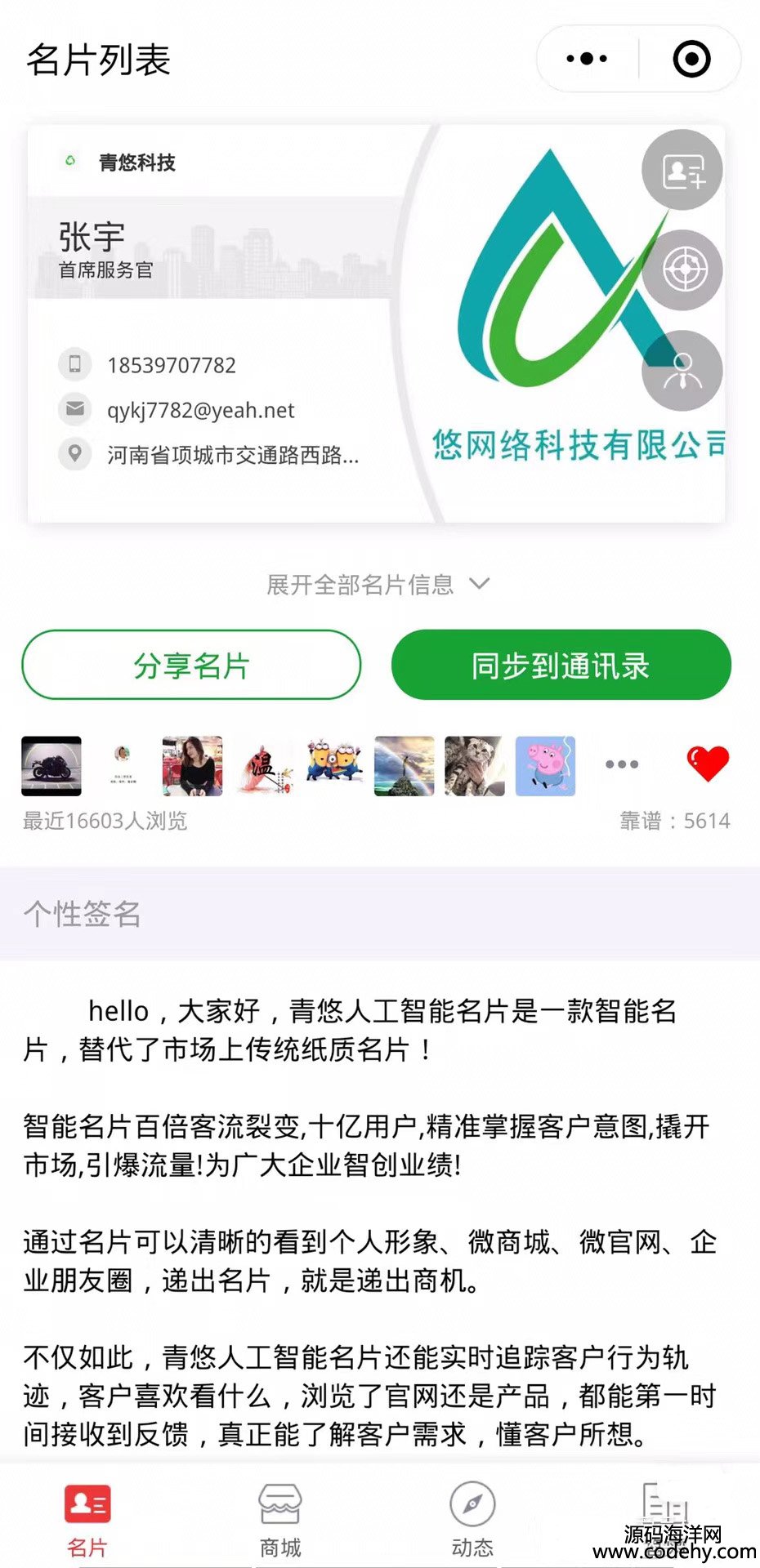 AI名片系統 源碼AI人工智能名片全套系統出售 AI人工智能名片,替代了傳統的紙質名片,無需印刷,通過明天二維碼,就能讓客戶第一時間了解到商家信息,聯系電話,商家位置,產品動態,商家官網。