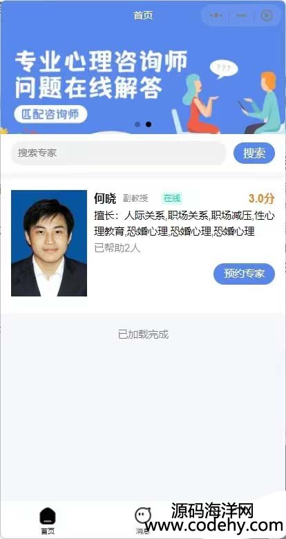 心理專家預(yù)約小程序系統(tǒng)源碼,基于tp5框架開發(fā),有一對一在線聊天功能