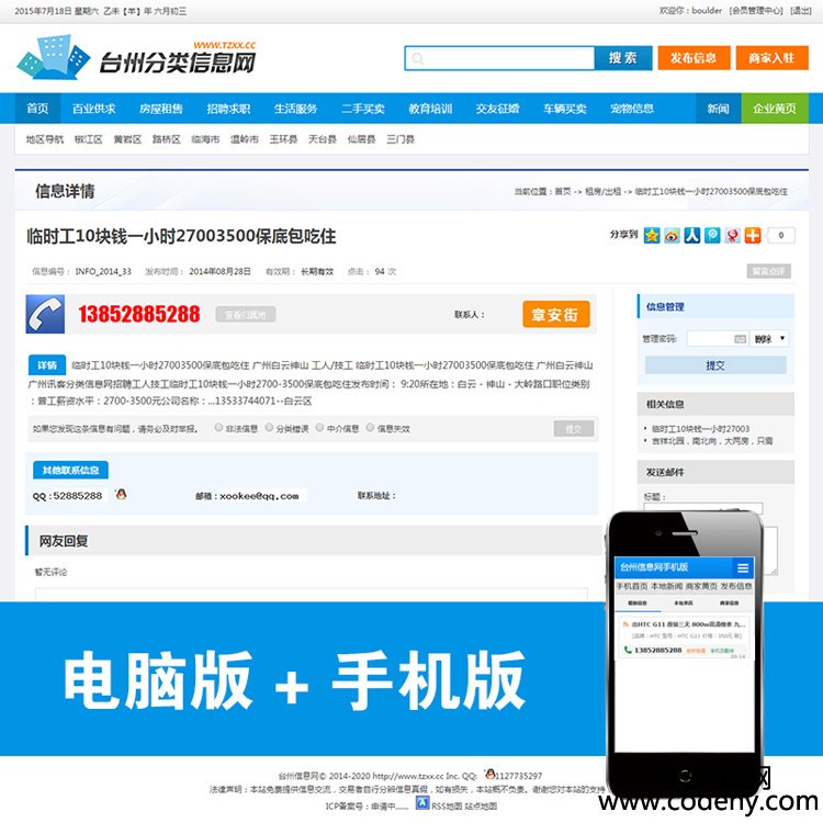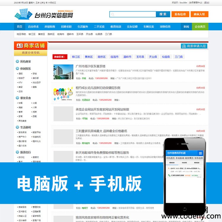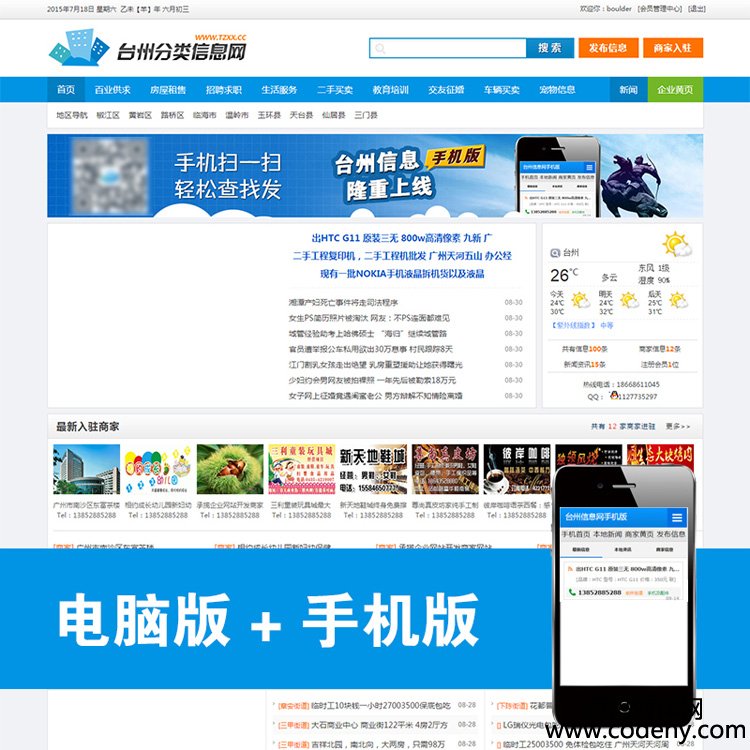 7120-分類信息網源碼PHP+mysql 手機端 電腦端 簡潔大氣 寬屏 phpmps