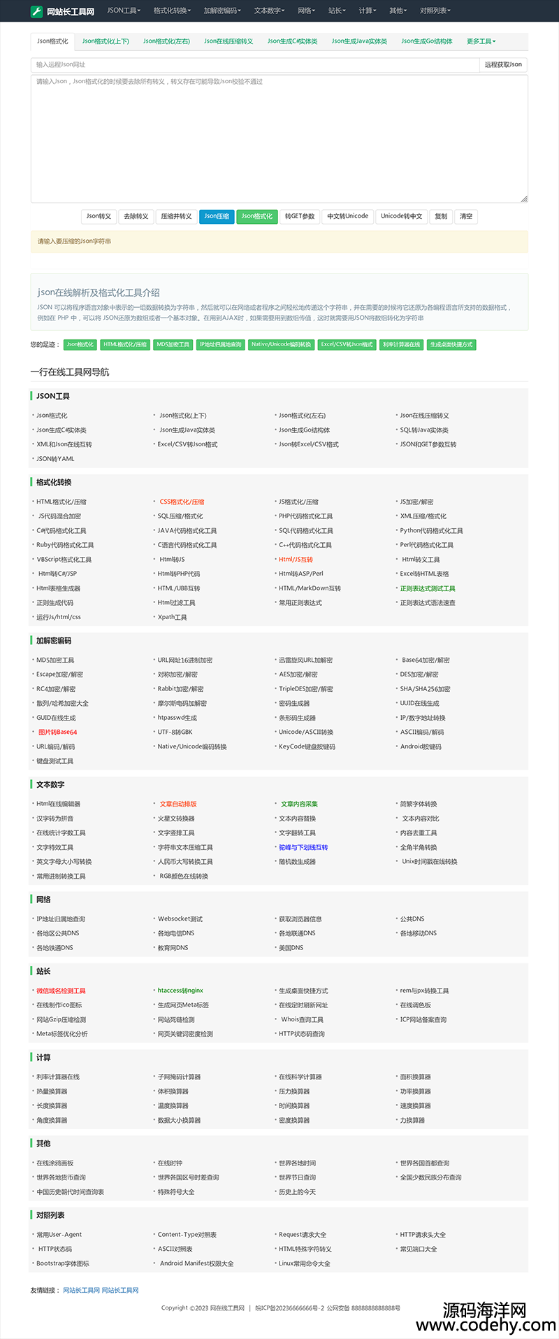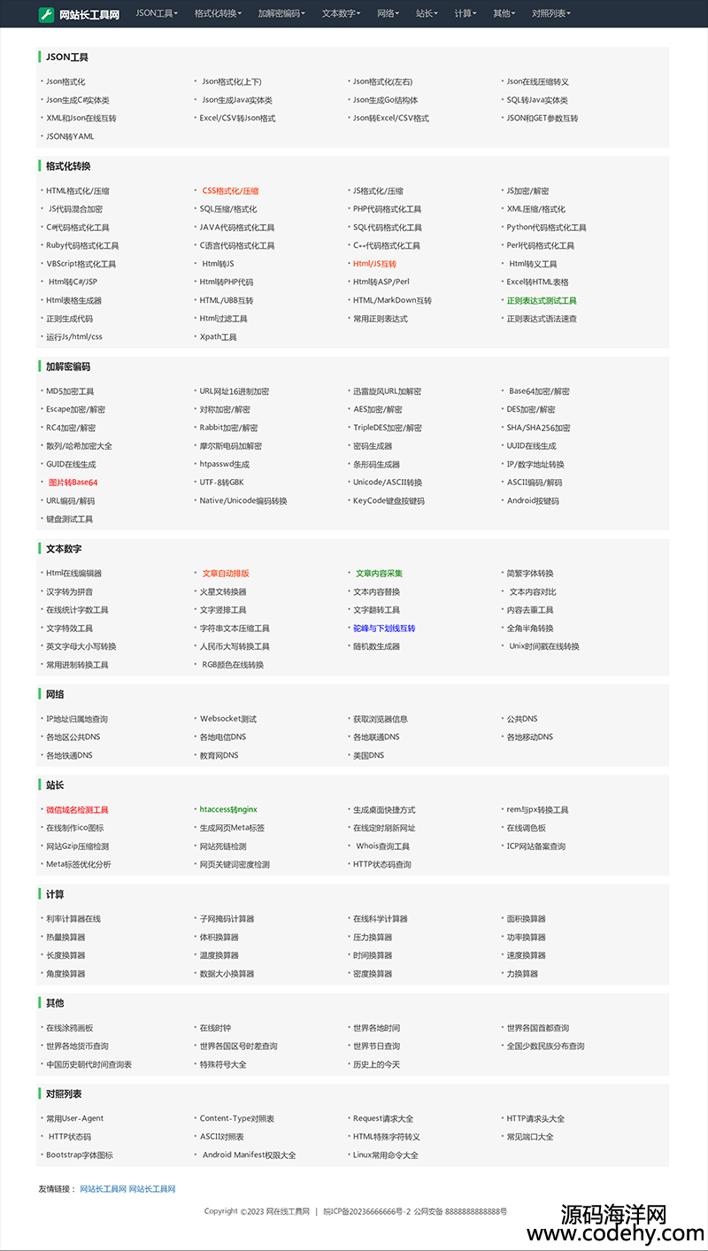 7122-2023新站長在線工具箱系統源碼 含上百款工具 自適應模板