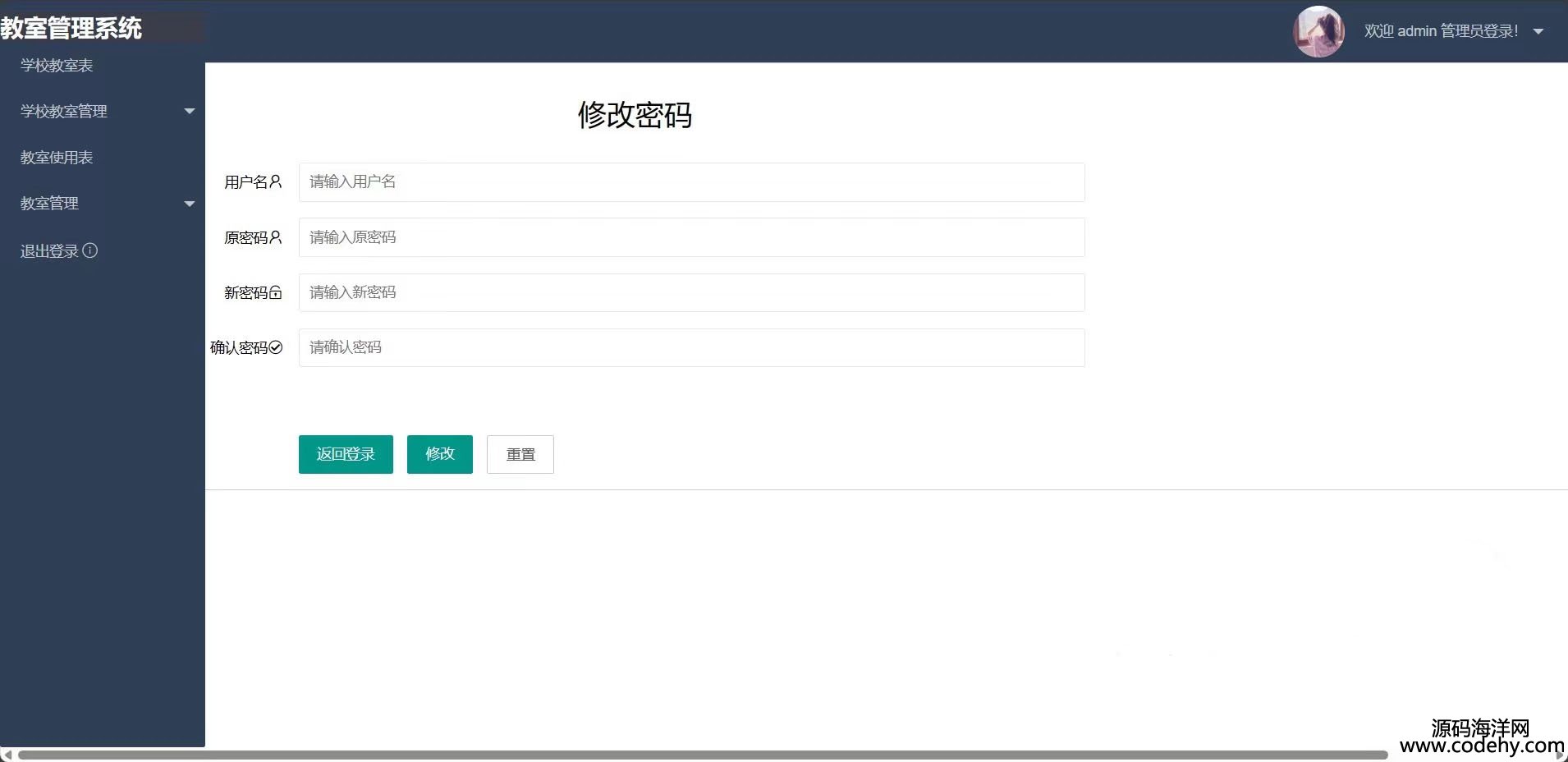 3.使用員信息頁+教室使用狀態(tài)+修改密碼