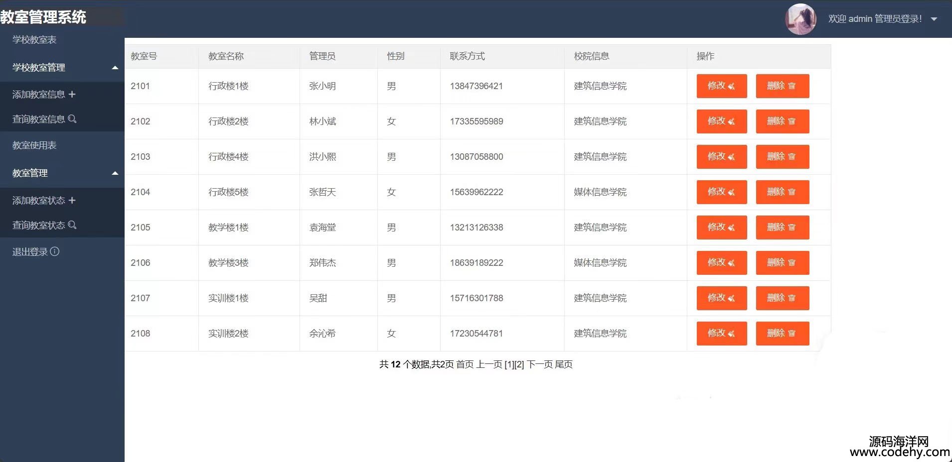 1.學(xué)校教室管理(增刪改查)+教室使用情況管理(增刪改查)