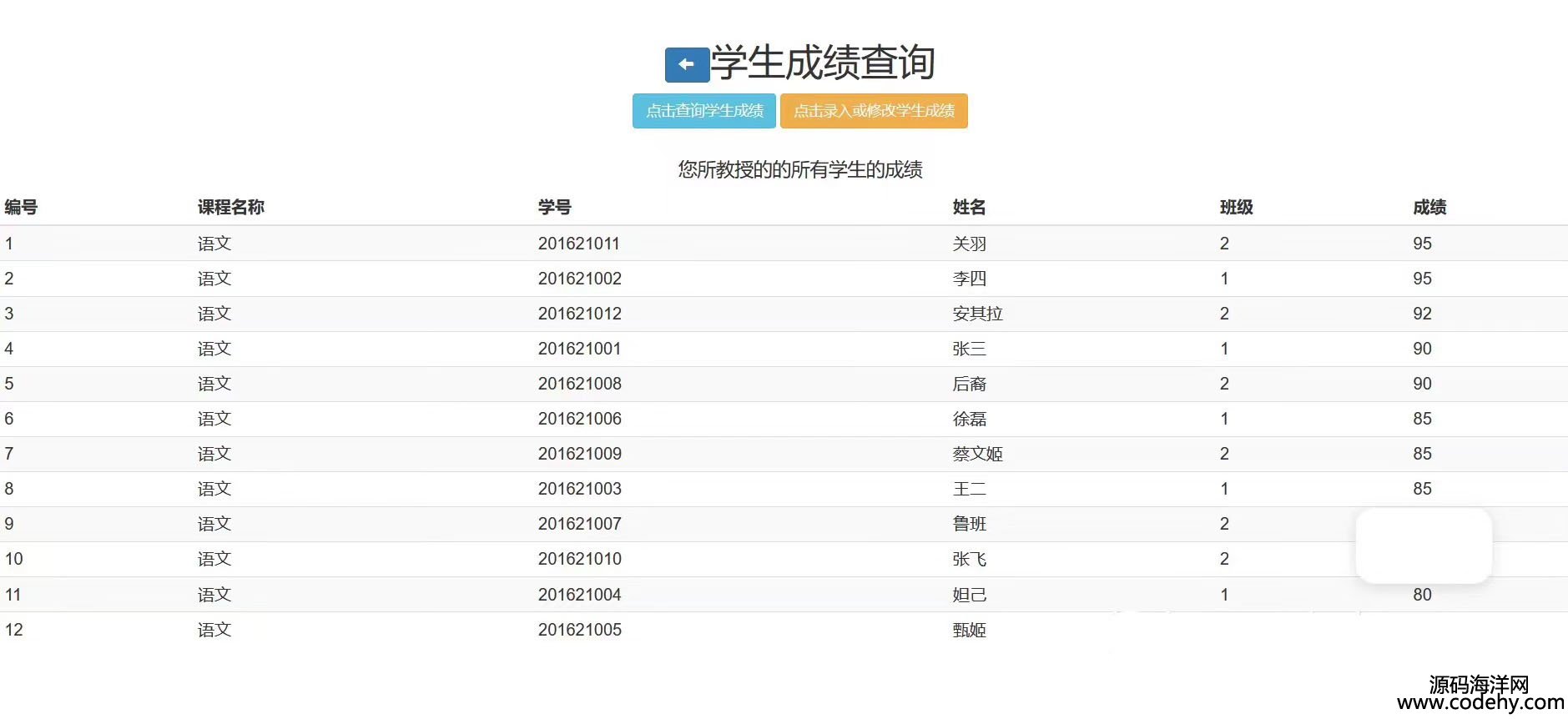 教師可以查看課程學生信息,還可以查詢及錄入成績