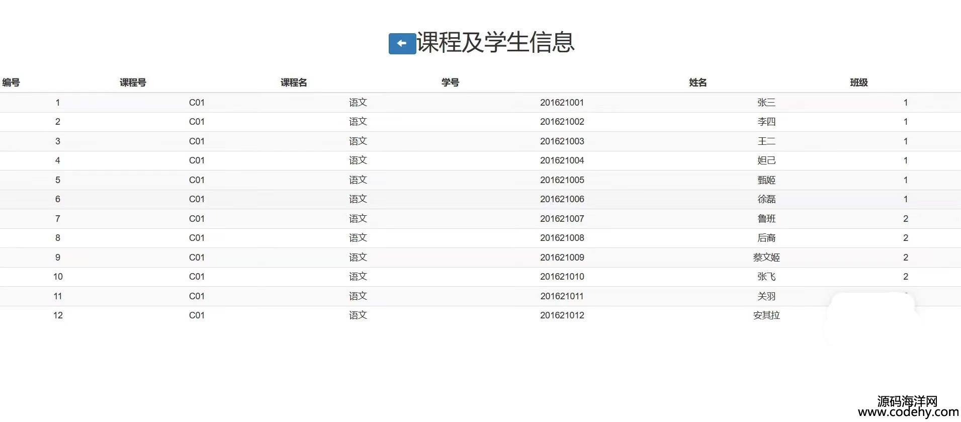 學生管理包括:全體學生信息、學生選課表、班級成績信息、學生維護信息