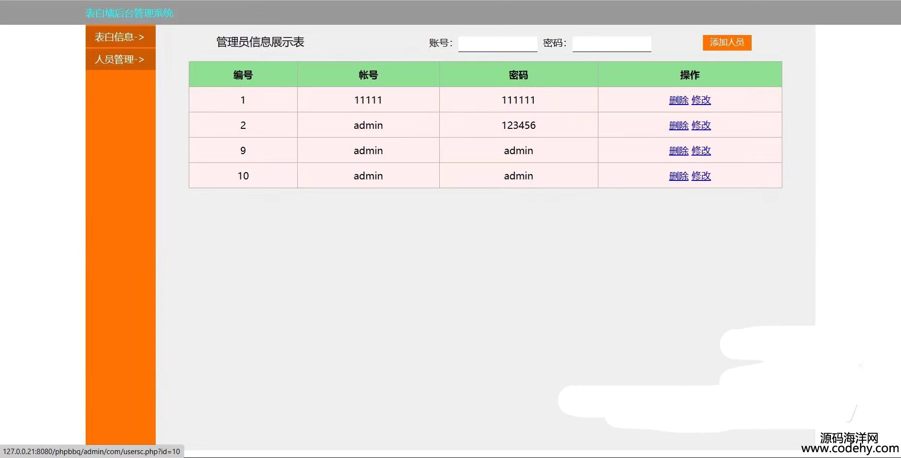 3.人員管理,修改、添加和刪除