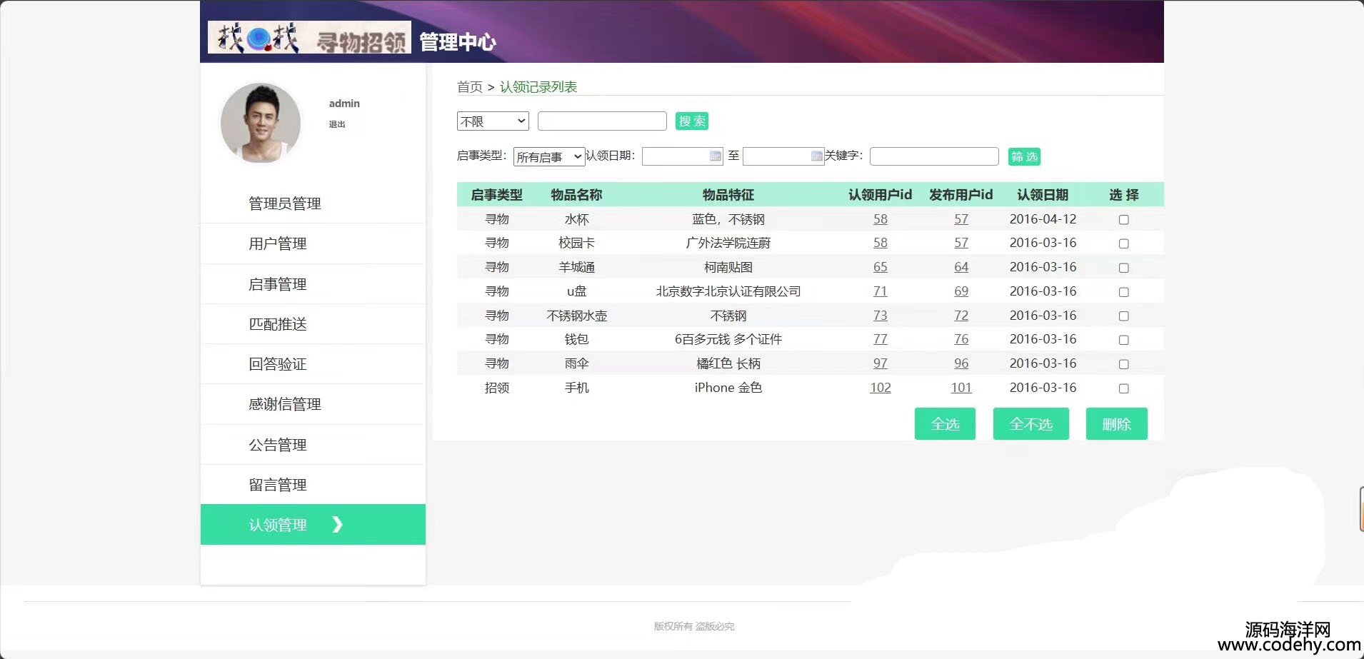 7300-PHP失物招領系統 PHP+MySQL 項目源碼+數據庫sql文件+ppt