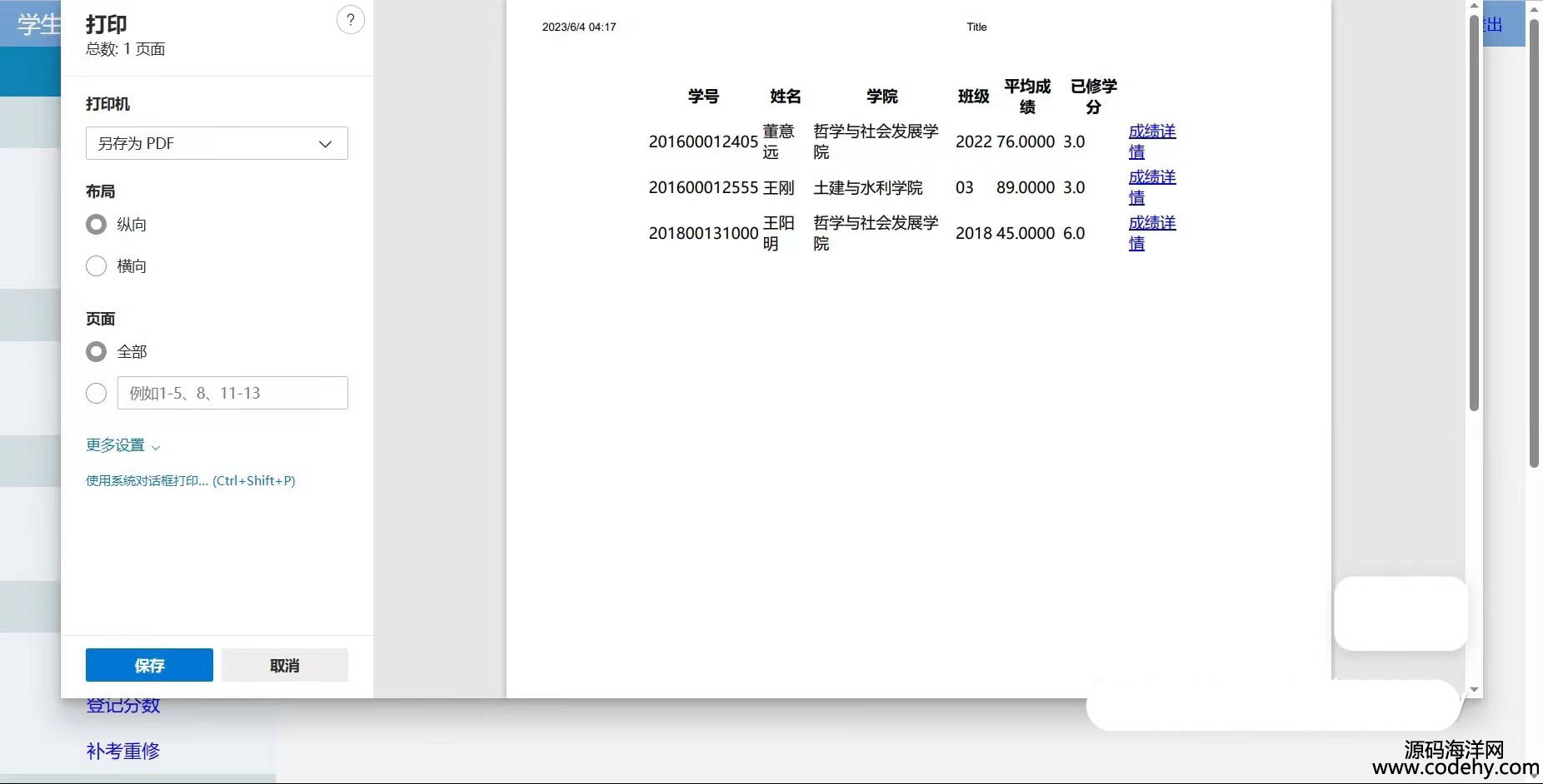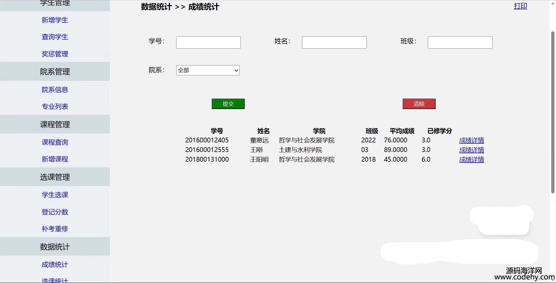 數據統計(對成績和選課數據統計并且能夠打印轉出為pdf文件),系統設置(管理學生賬戶和修改密碼)