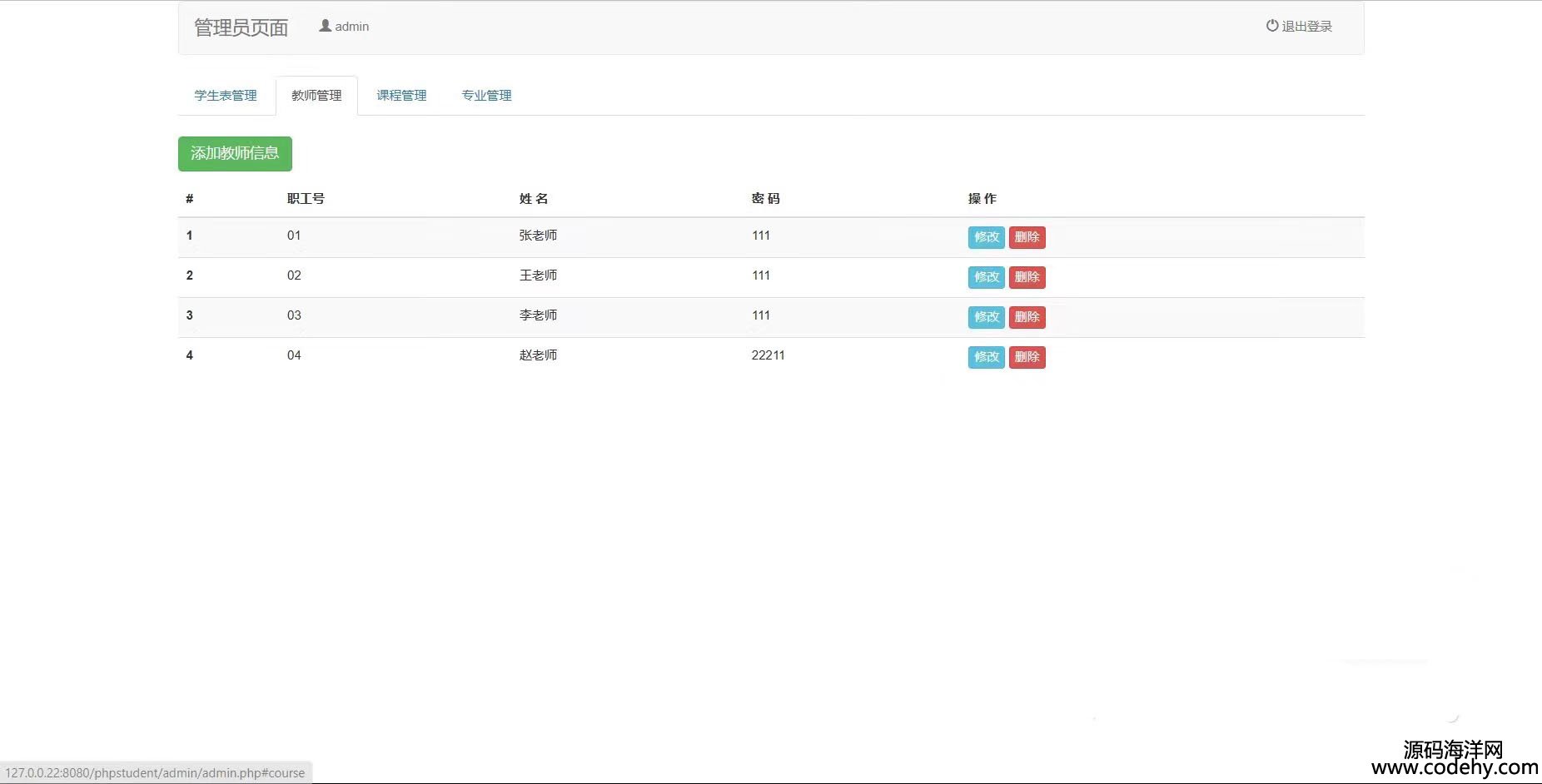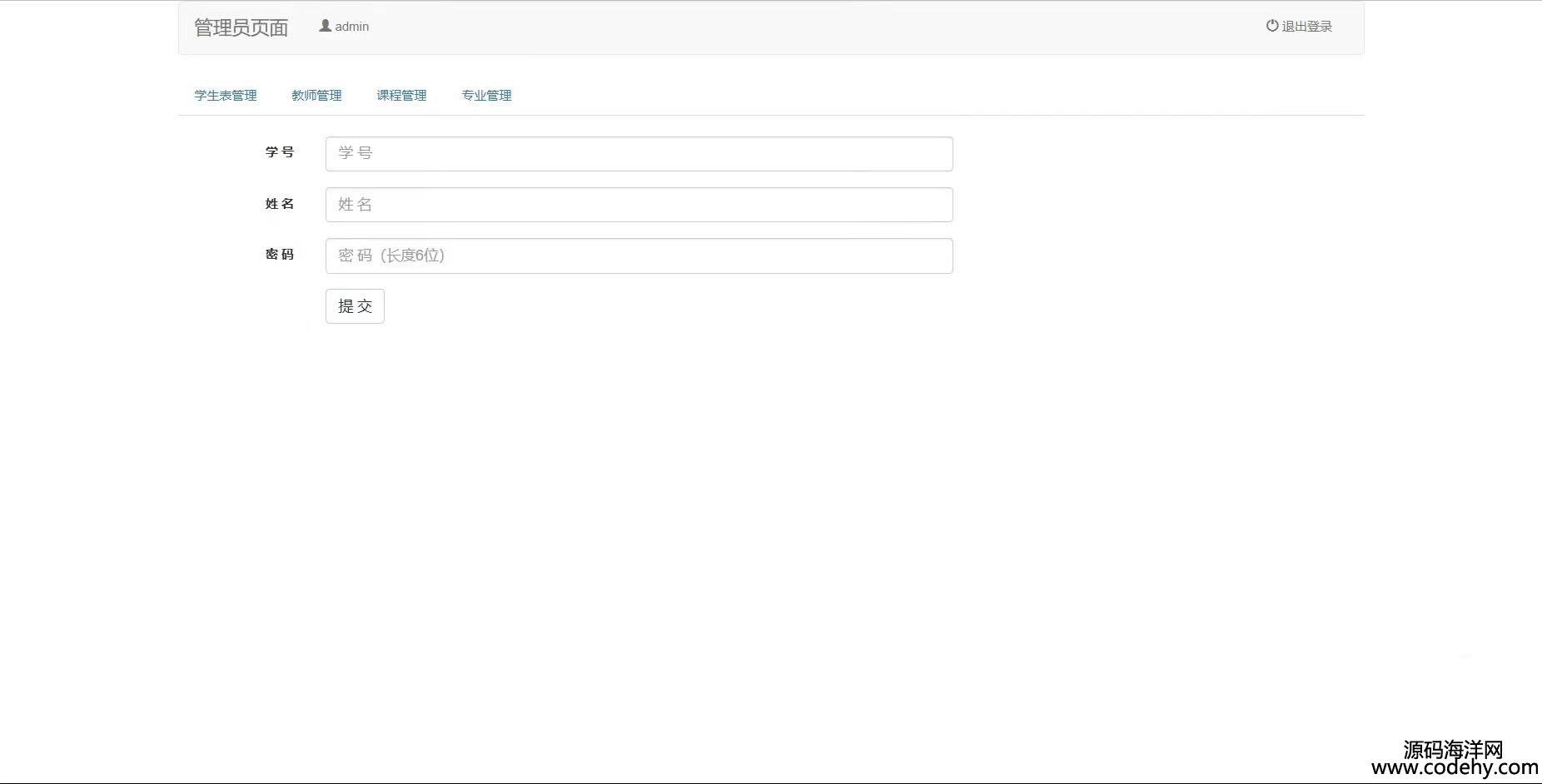 3.管理員:能夠對學生、教師、課程、專業實現添加、刪除、修改和查看