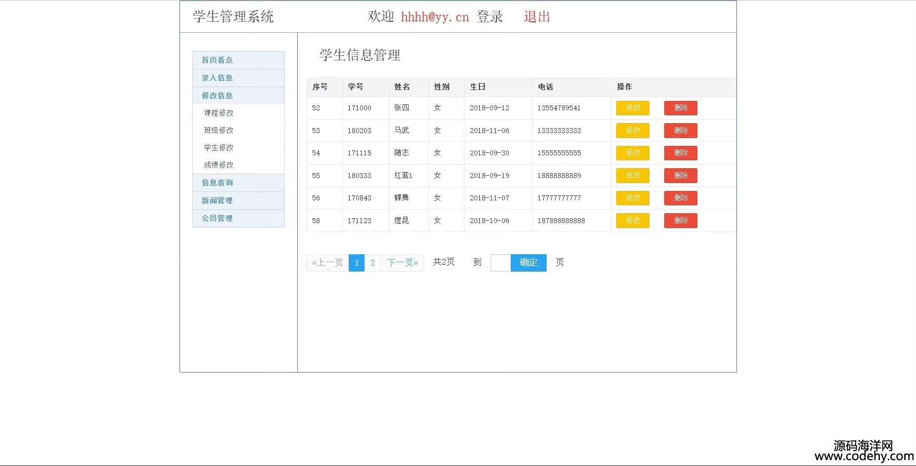 2.用戶對課程、班級、學生、成績的增刪改查。