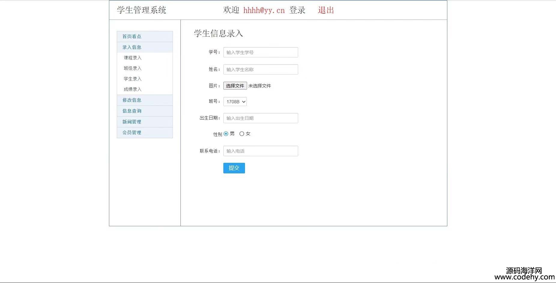 4.錄入信息頁面:實現課程、班級、學生、成績的信息錄入