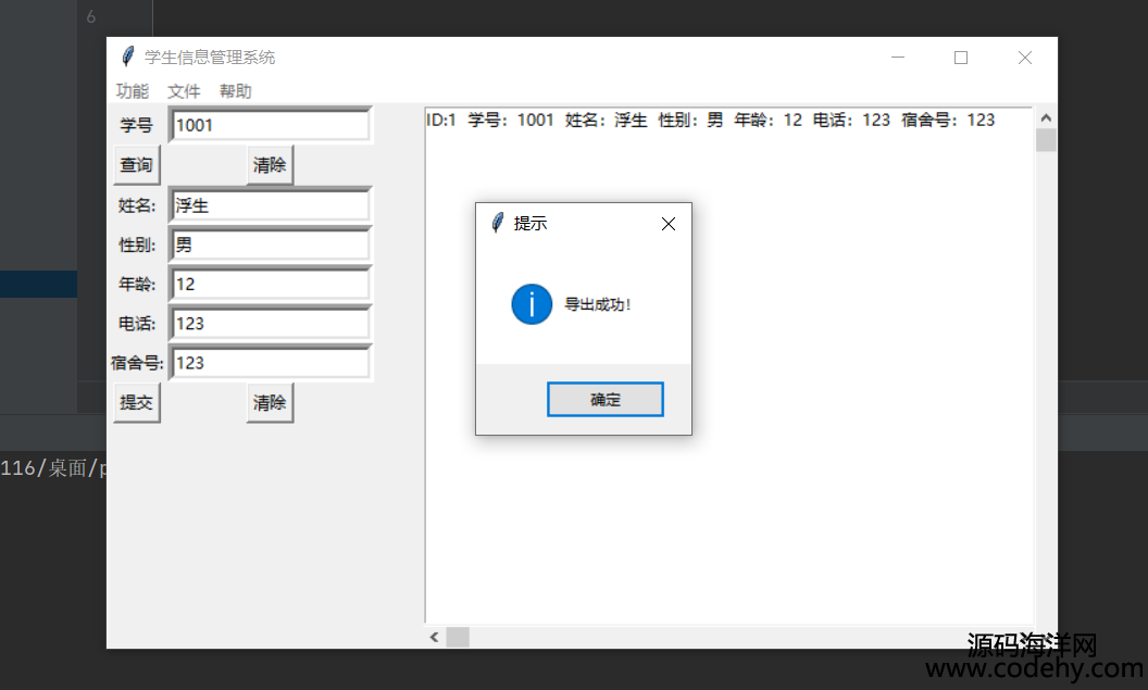 python的Tkinter編寫的學生信息管理系統(tǒng),使用MySQL保存數(shù)據,實現(xiàn)了登錄、注冊、增刪改查和導出為Excel的功能。詳情可以參考圖片